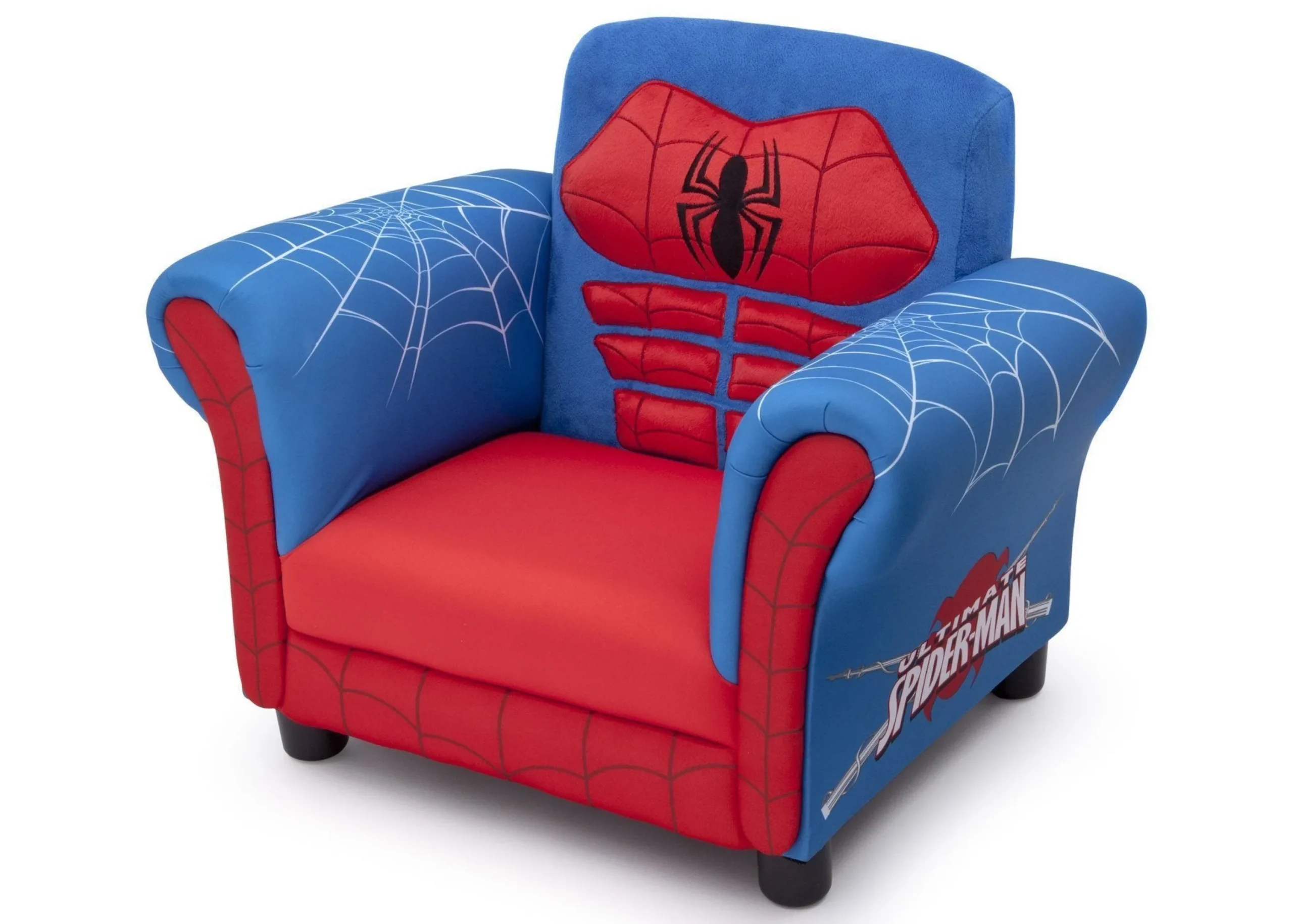 They’ll cling to this Spider-Man Figural Chair from Delta Children! Full of web-slinging style, the colorful graphics and 3D accents promise to brighten your child’s day, while the sturdy hardwood frame and plush seat are designed to withstand years of use.