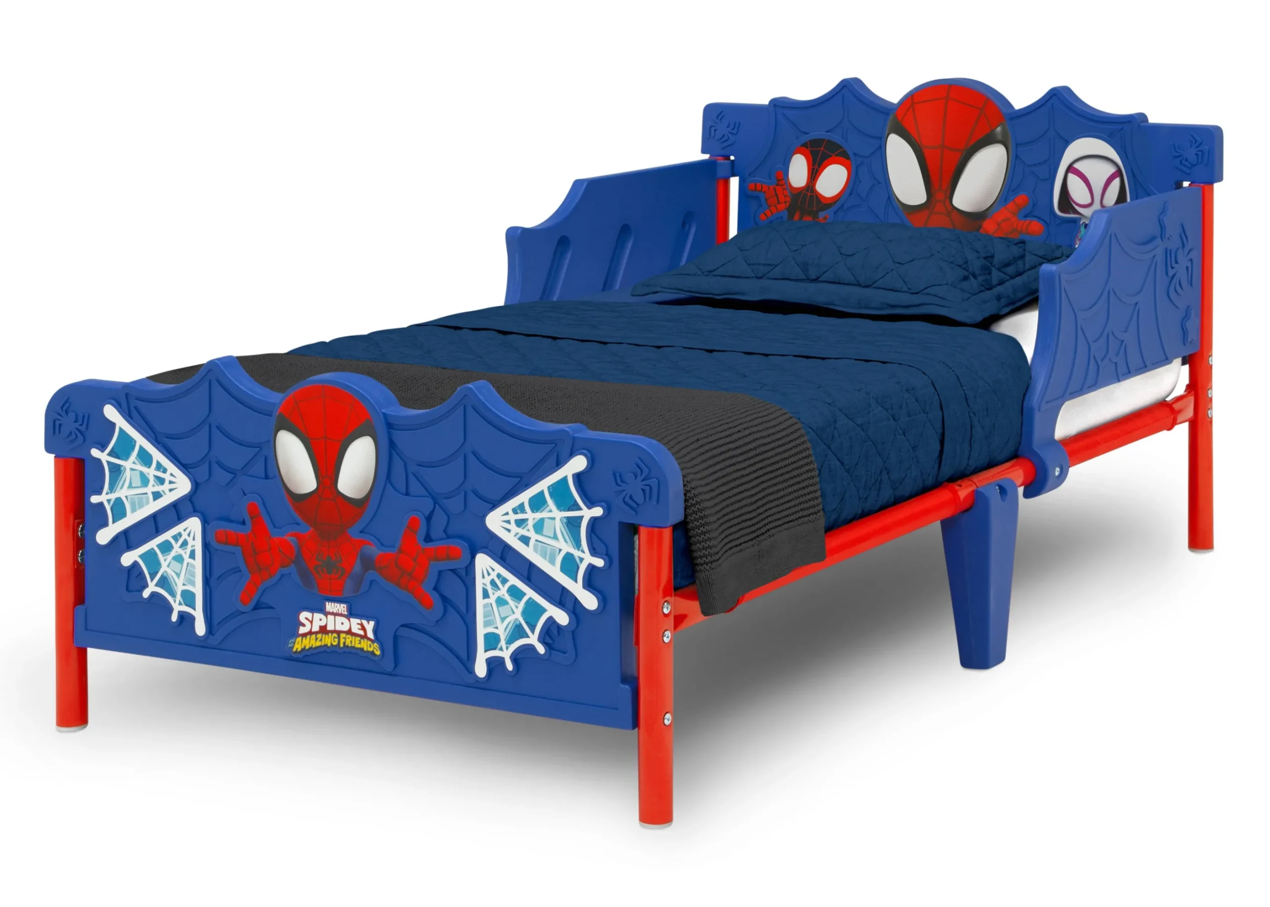 Help your little superhero drift off to dreamland after a hard-day’s crime-fighting, swinging and web-slinging with this Spidey and His Amazing Friends 3D Toddler Bed by Delta Children. Featuring colorful Spidey decals, plus three-dimensional accents on the headboard, footboard and side rails, this toddler bed will be the centerpiece of any kid’s bedroom. For additional security, this toddler bed is the perfect kid-sized height and has two attached guardrails, which makes it the best option for your child’s first big-kid bed. It provides the independence your growing child craves while keeping them safe throughout the night. The Spidey and His Amazing Friends 3D Toddler Bed by Delta Children is sure to inspire big dreams for your little one.