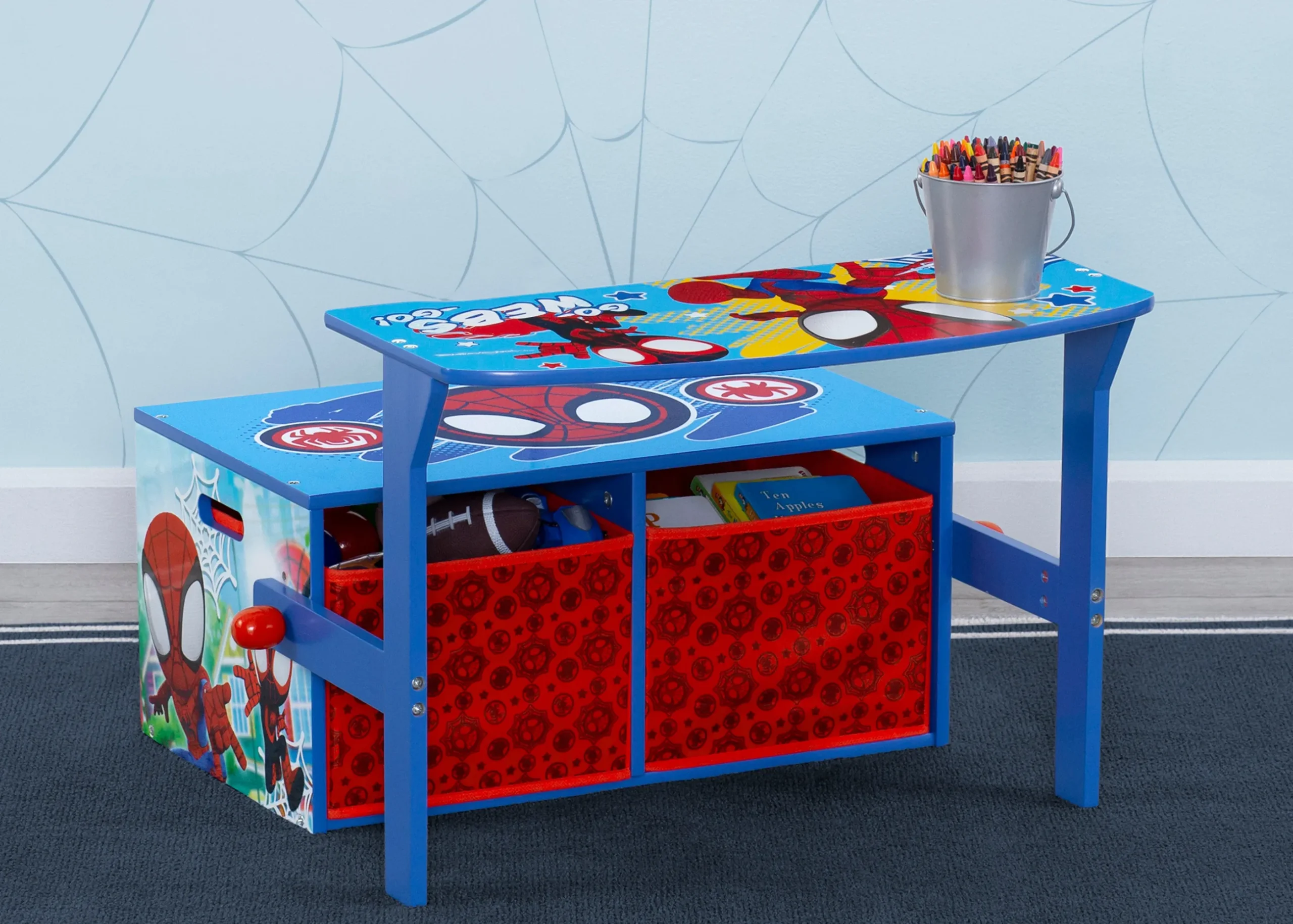 Your little one will swing into creativity with this Marvel Spidey and His Amazing Friends Activity Bench by Delta Children. It’s 2-in-1 design converts from a storage bench to a desk in seconds. An adorable addition to your child’s play space, this clever activity bench will have your child ready for their next adventure when they see the colorful graphics of Spidey and His Amazing Friends.