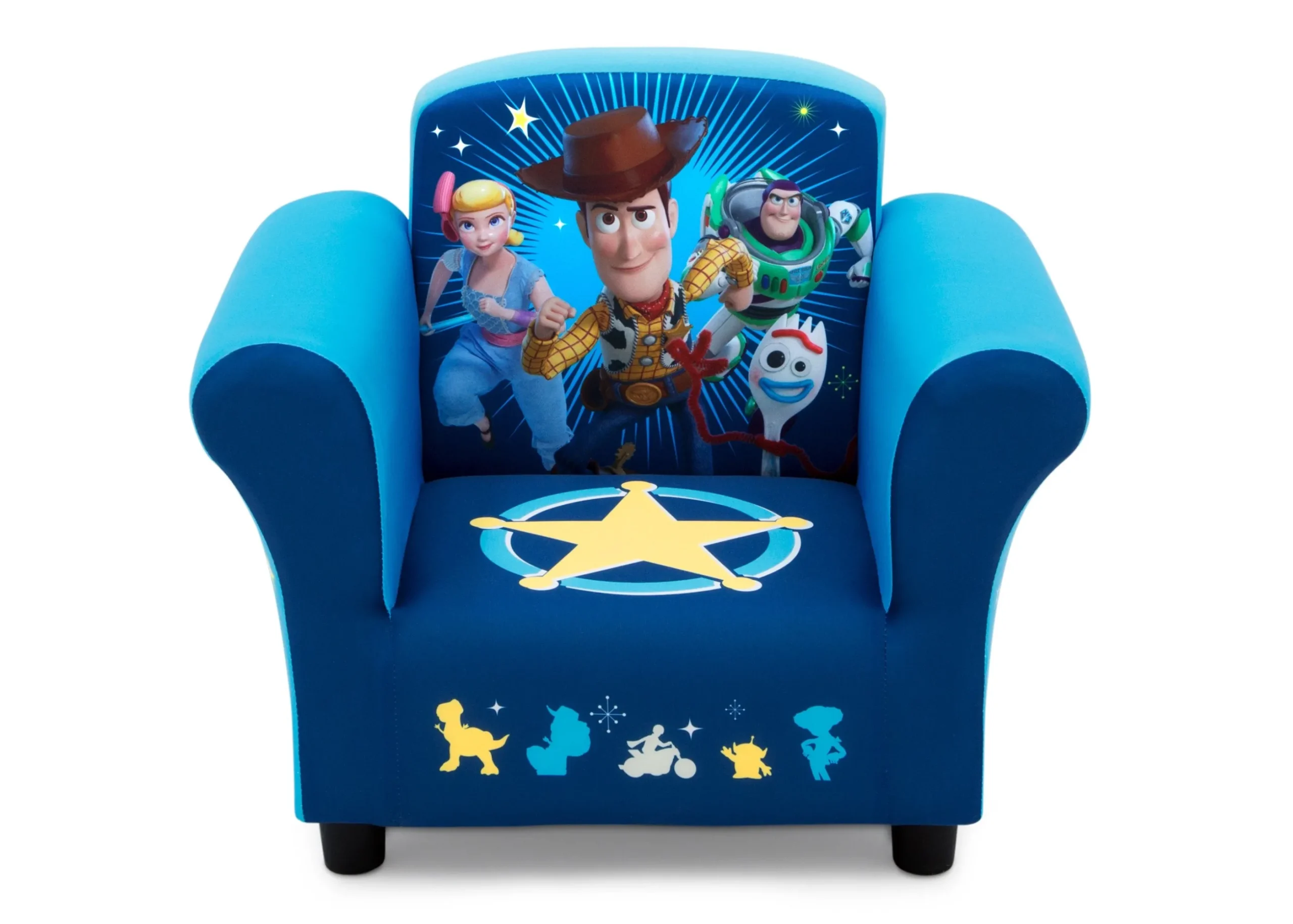 This Toy Story 4 Kids Upholstered Chair makes it super-easy to set up a playdate with their favorite toys. The vibrant graphics add out-of-this world fun to any activity, while creating an ambiance that’s perfect for make believe. Designed at a size that’s just right for kids, this chair features cushioned padding, with a strong and sturdy wood frame built to withstand years of use.
