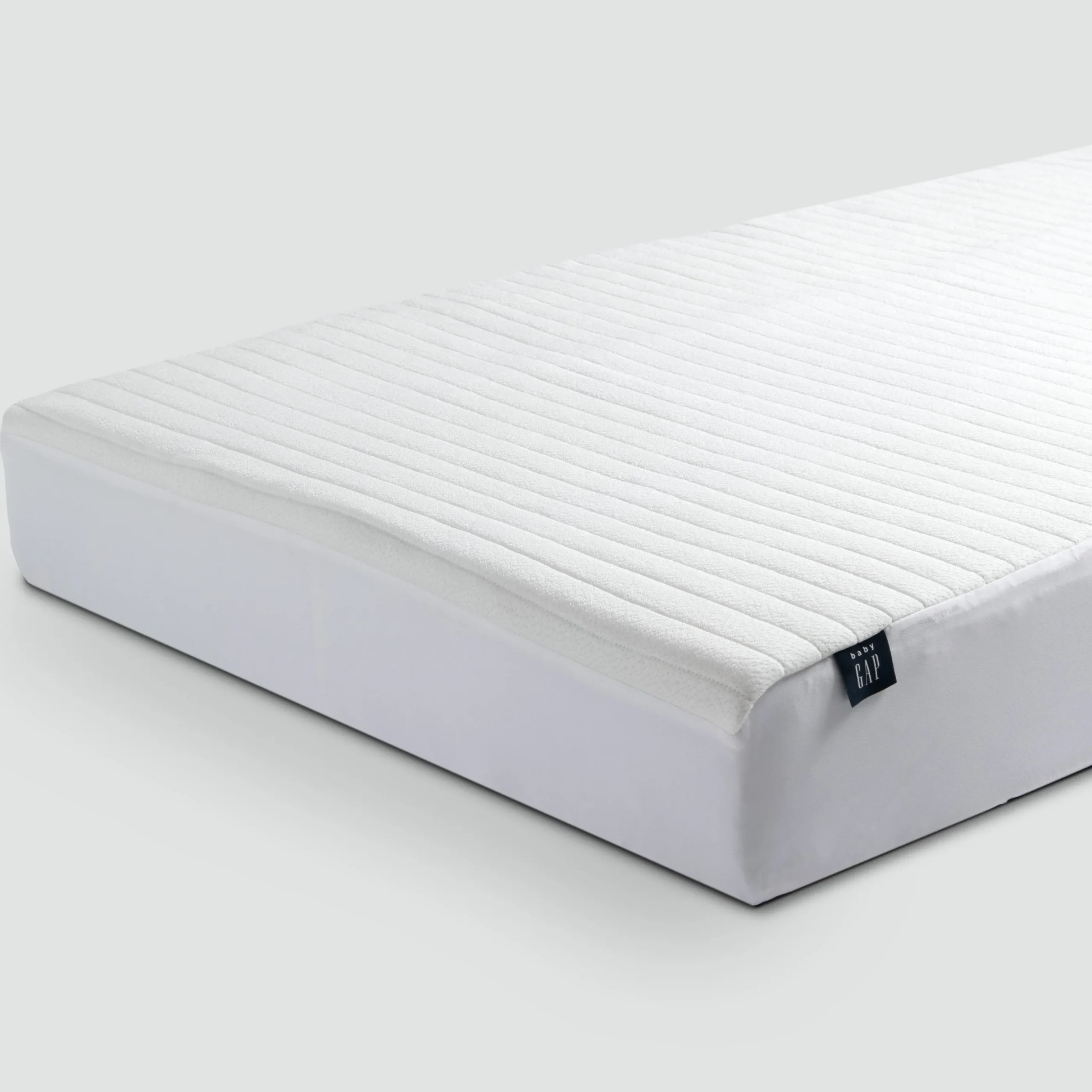 Keep your baby dry and comfortable with this babyGap by Delta Children Cooling Crib Mattress Pad/Protector. The pad’s cooling fiber construction keeps your child’s sleep environment cool and dry. Everything you could need in a crib mattress pad cover, the babyGap by Delta Children Cooling Crib Mattress Pad/Protector also features a soft, quilted top for additional comfort. A waterproof backing protects your baby’s mattress from spills, leaks and stains. Finished with elastic edges, this baby mattress pad cover will stay securely in place as your little one sleeps. Fits standard size crib mattresses and toddler bed mattresses.