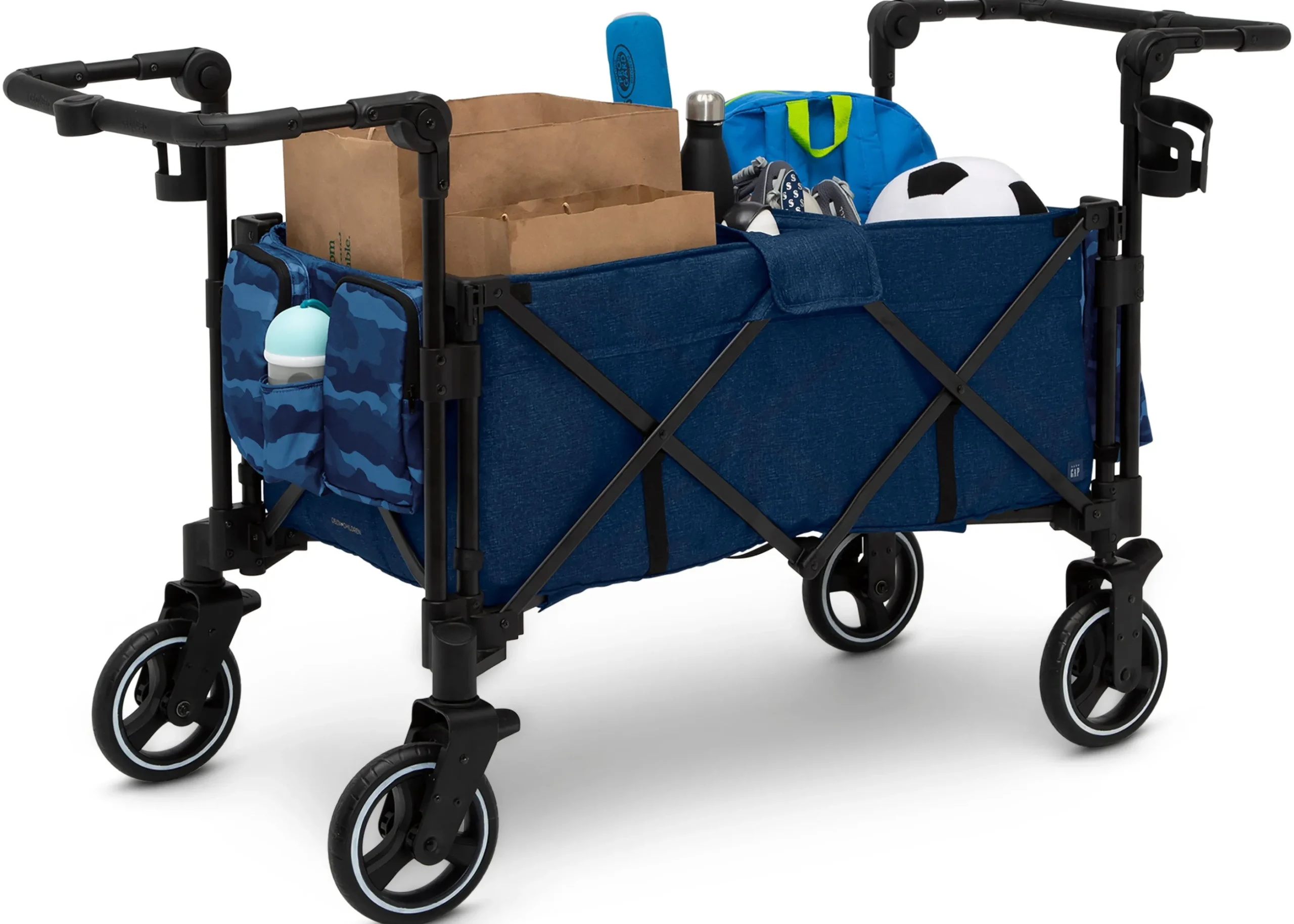 The babyGap Deluxe Explorer Wagon comfortably fits 2 children. This convenient wagon is perfect for indoor or outdoor activities