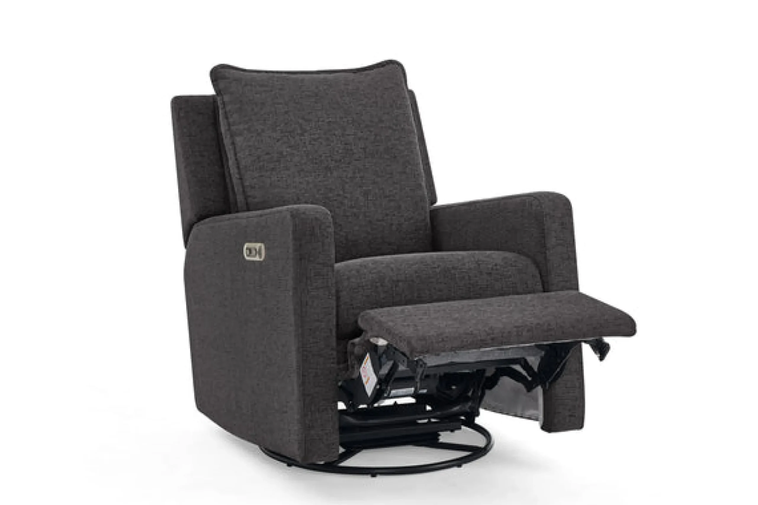 Enjoy comfort at the touch of the button with the babyGap Harlowe Power Recliner by Delta Children. An easy-to-reach control panel on the side features buttons that control reclining, plus USB A/C charging ports, so you can have electronics conveniently on hand. Outfitted with a soothing glide and 240-degree swivel, this chair is ready to recline when you are, just hold the button and your feet will be raised on the footrest, followed by the backrest. Upholstered in our OEKO-TEX STANDARD 100 Certified performance fabric that is water and stain resistant fabric for easy clean up, this recliner is made to last through kids, pets, and busy lives. Plus, this recliner is GREENGUARD Gold Certified, which means it’s built to contribute to cleaner indoor air.