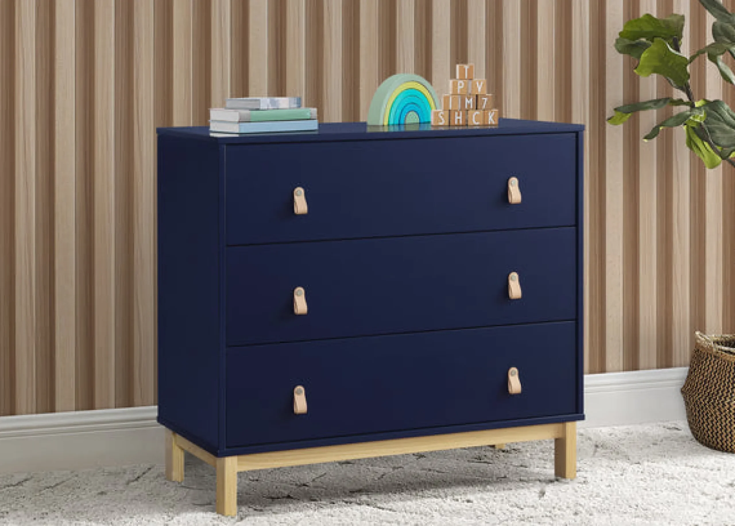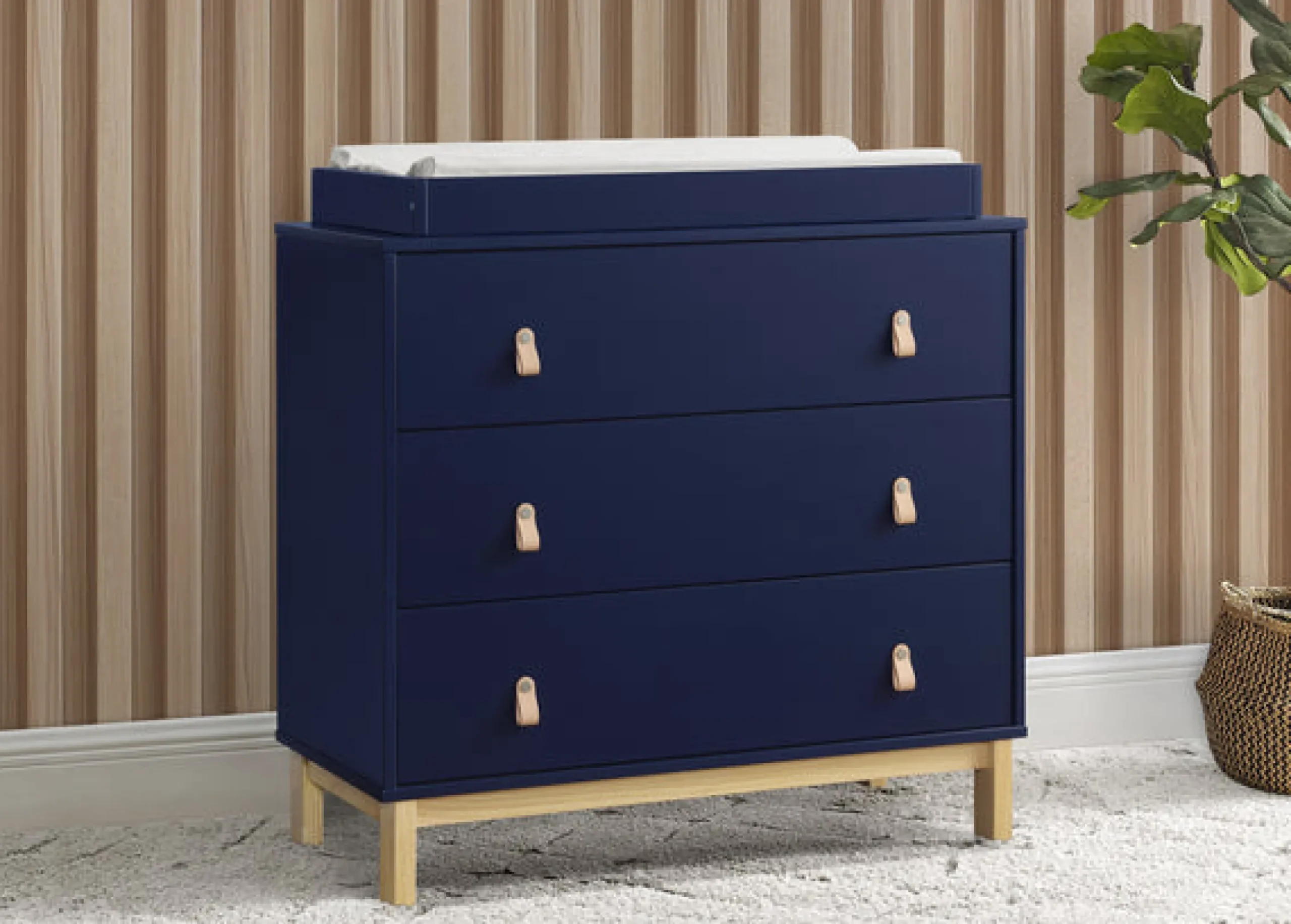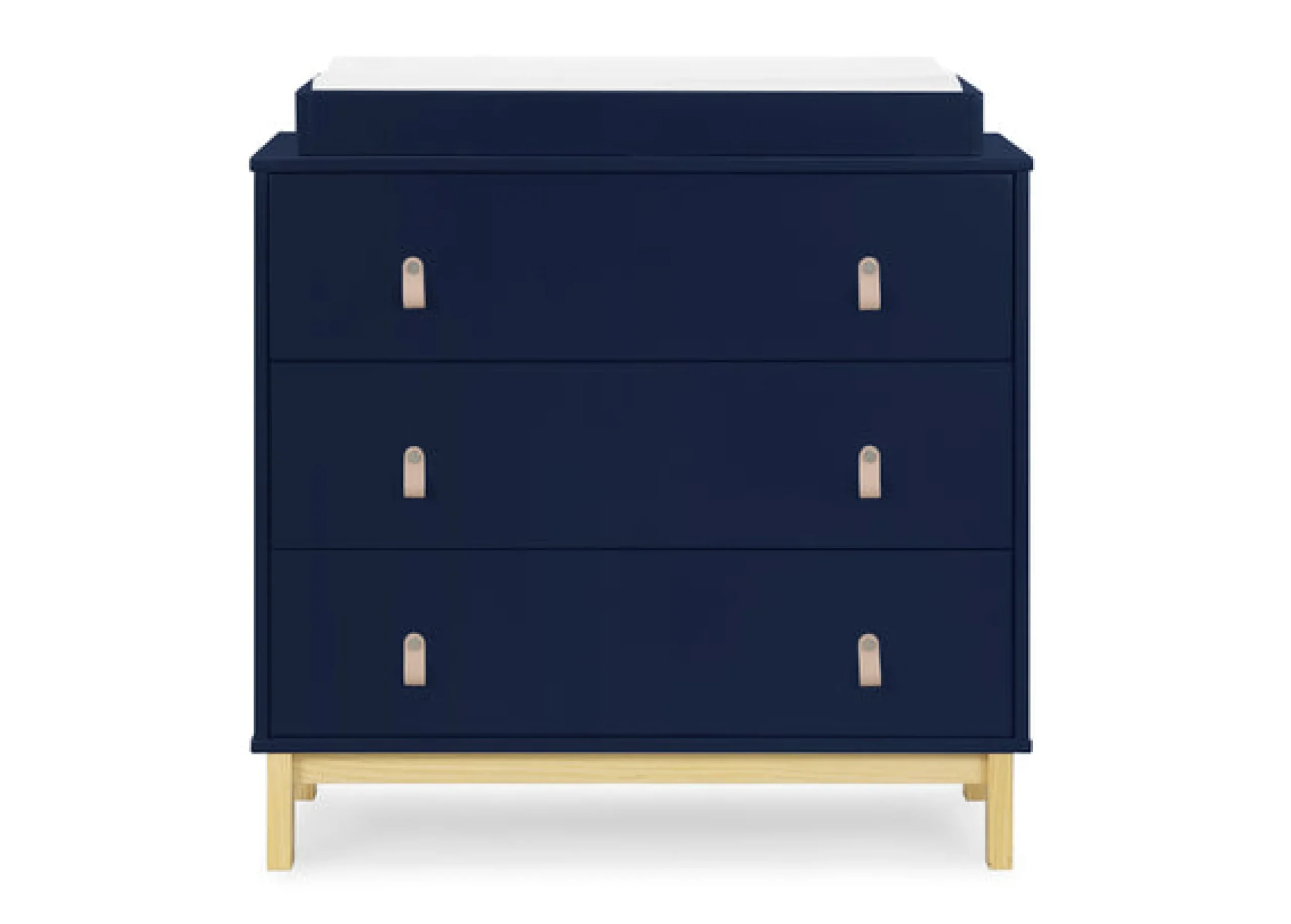 The babyGap Legacy 3 Drawer Dresser with Leather Pulls is a great addition to any nursery or kids’ bedroom. Crafted of sturdy, sustainable materials like New Zealand pine to give it plenty of longevity, this versatile dresser has three spacious drawers for plenty of storage and leather drawer pulls for a bit of fun. Plus, it’s GREENGUARD Gold Certified, which means it’s built to contribute to cleaner air for a healthy home. Available in Bianca White/Natural, Navy/Natural and Ebony/Natural. Easily mix, match, and layer with other items from the babyGap Furniture and Bedding Collection. Pair with the coordinating Changing Top #W173810 to convert the dresser into a convenient changing table (Changing Top and changing pad sold separately).