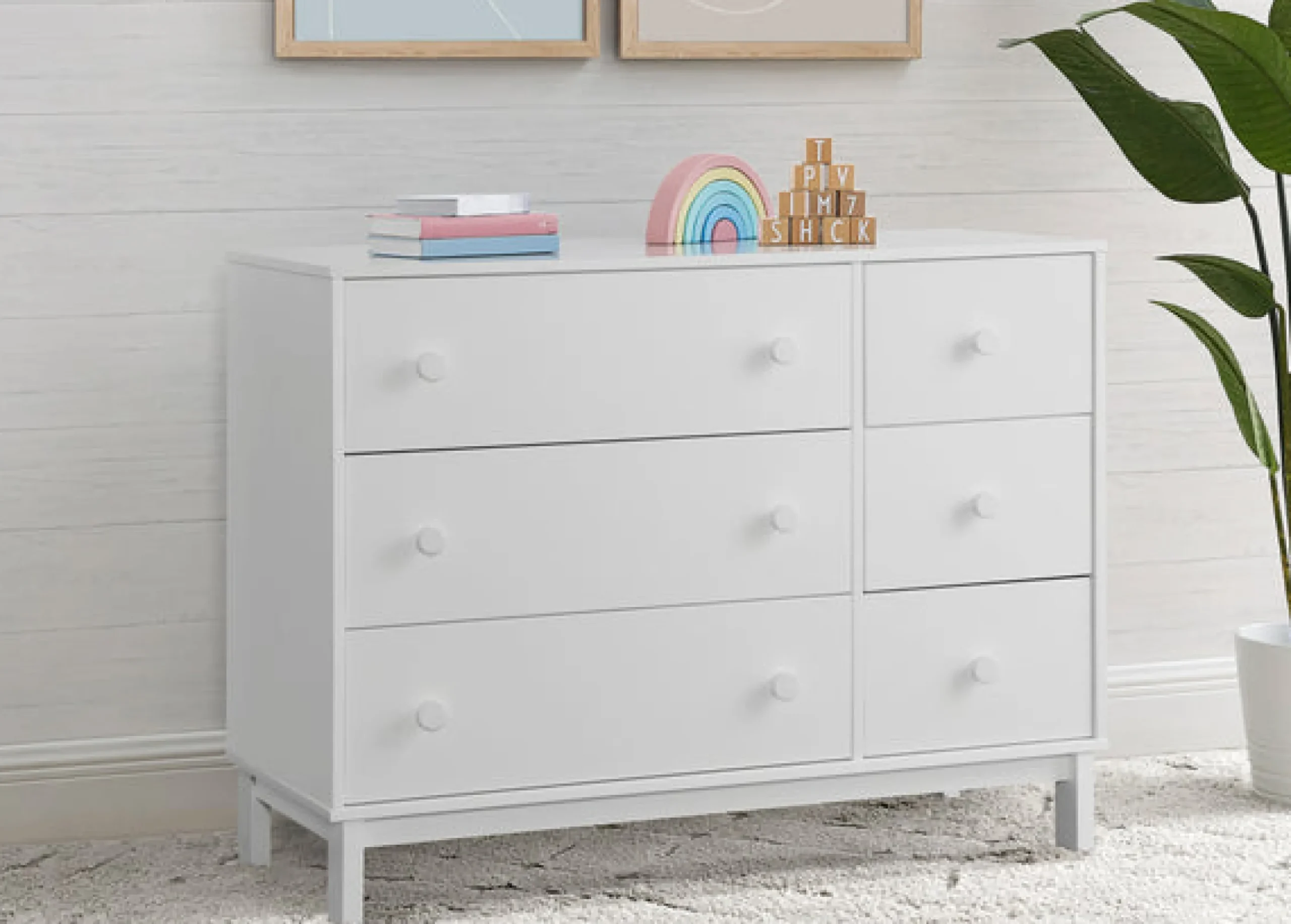 In a goes-with-anything finish with easy-grab knobs, the babyGap Legacy 6 Drawer Dresser with Interlocking Drawers is a great addition to any nursery or kids’ bedroom. Crafted of sturdy, sustainable materials like New Zealand pine to give it plenty of longevity, this versatile dresser has a mix of small and large drawers to simplify organization. For your child’s safety, this dresser is outfitted with an interlocking drawer system that limits the number of drawers that can be opened at one time. Available in Bianca White, Navy/Light Blue, Grey/Dark Grey and Blush/Dark Pink. Easily mix, match, and layer with other items from the babyGap Furniture and Bedding Collection. Pair with the coordinating Changing Top #W173810 to convert the dresser into a convenient changing table (Changing Top and changing pad sold separately).This babyGap by Delta Children dresser is tested to meet the current requirements of ASTM F2057, the mandatory CPSC safety standard that protects young children from furniture tip-over incidents. For your children’s safety, only purchase dressers that comply with this standard. For additional security, babyGap strongly recommends that all dressers in your home be anchored; all babyGap dressers include a wall anchor. To learn how to properly secure your dresser, please see the product assembly instructions or visit our website.