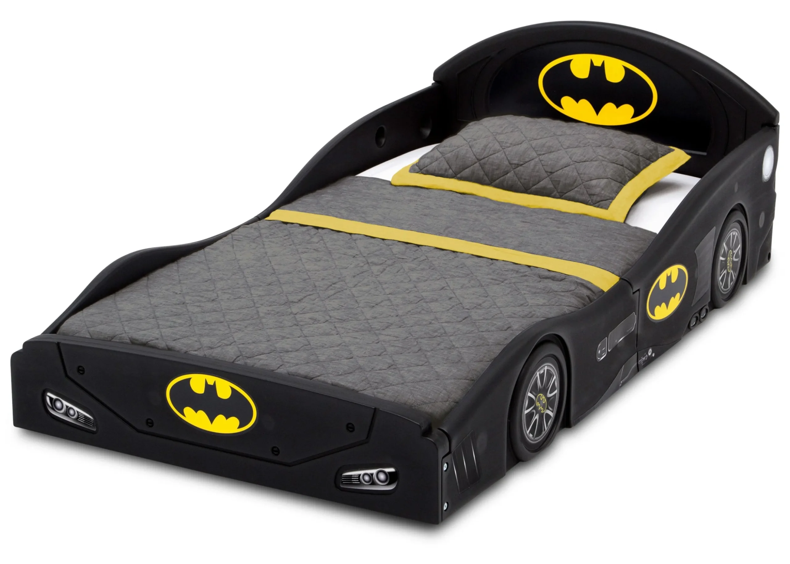 Answer the call to bedtime with this Batmobile Sleep and Play Toddler Bed. This bed features fun decals in the likeness of Batman’s Batmobile! Attached guardrails will ensure your little one is safe and secure throughout the night, and sturdy plastic construction ensures sweet dreams for years to come.