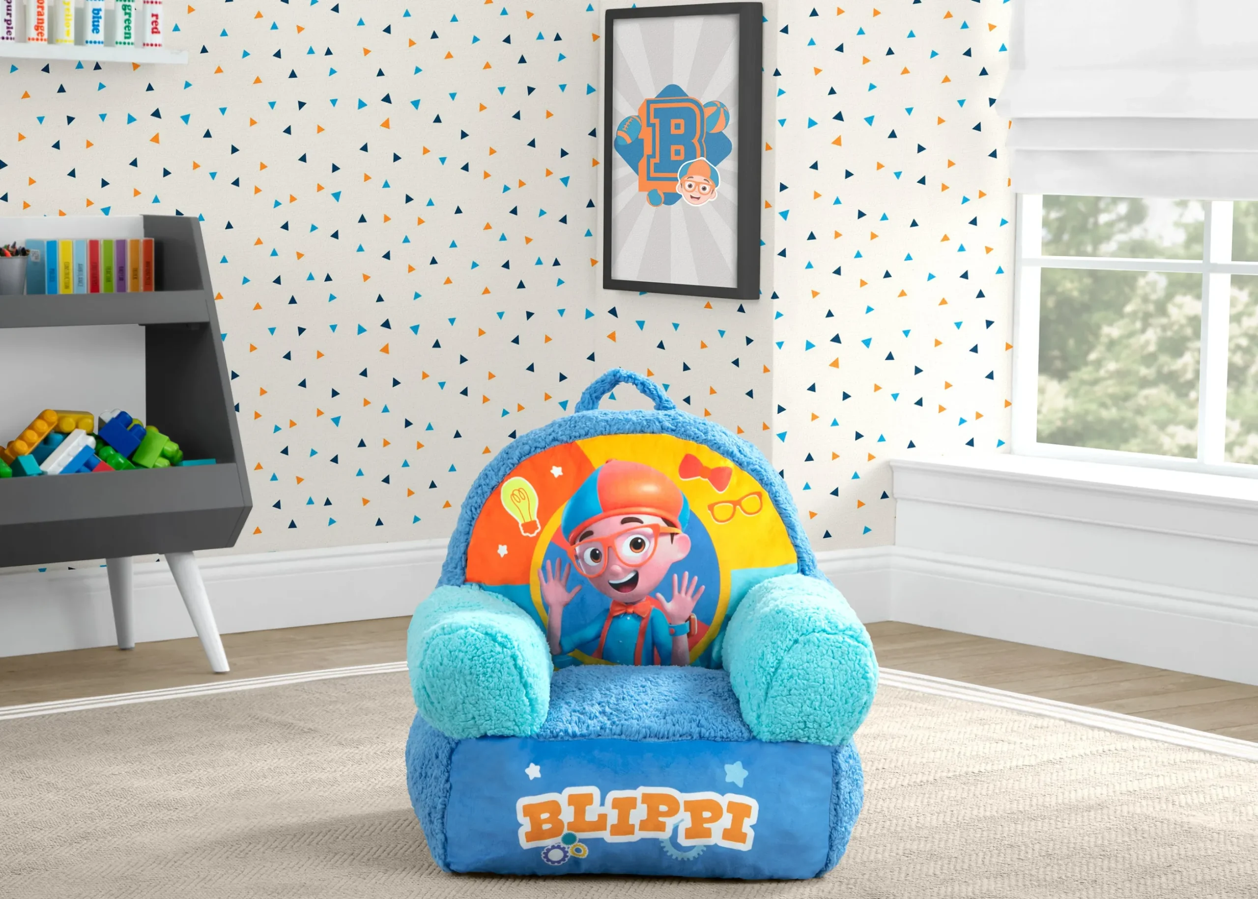 The ultimate playmate, this Blippi Cozee Buddy Chair by Delta Children is comfy and durable. This plush chair features colorful Blippi graphics, super-soft sherpa detailing, and an easy-to-grab handle that makes it easy to move around the house! The foam design of this comfy chair offers kids a cozy companion for reading, relaxing or snuggling, making it perfect for playrooms and kids bedrooms.