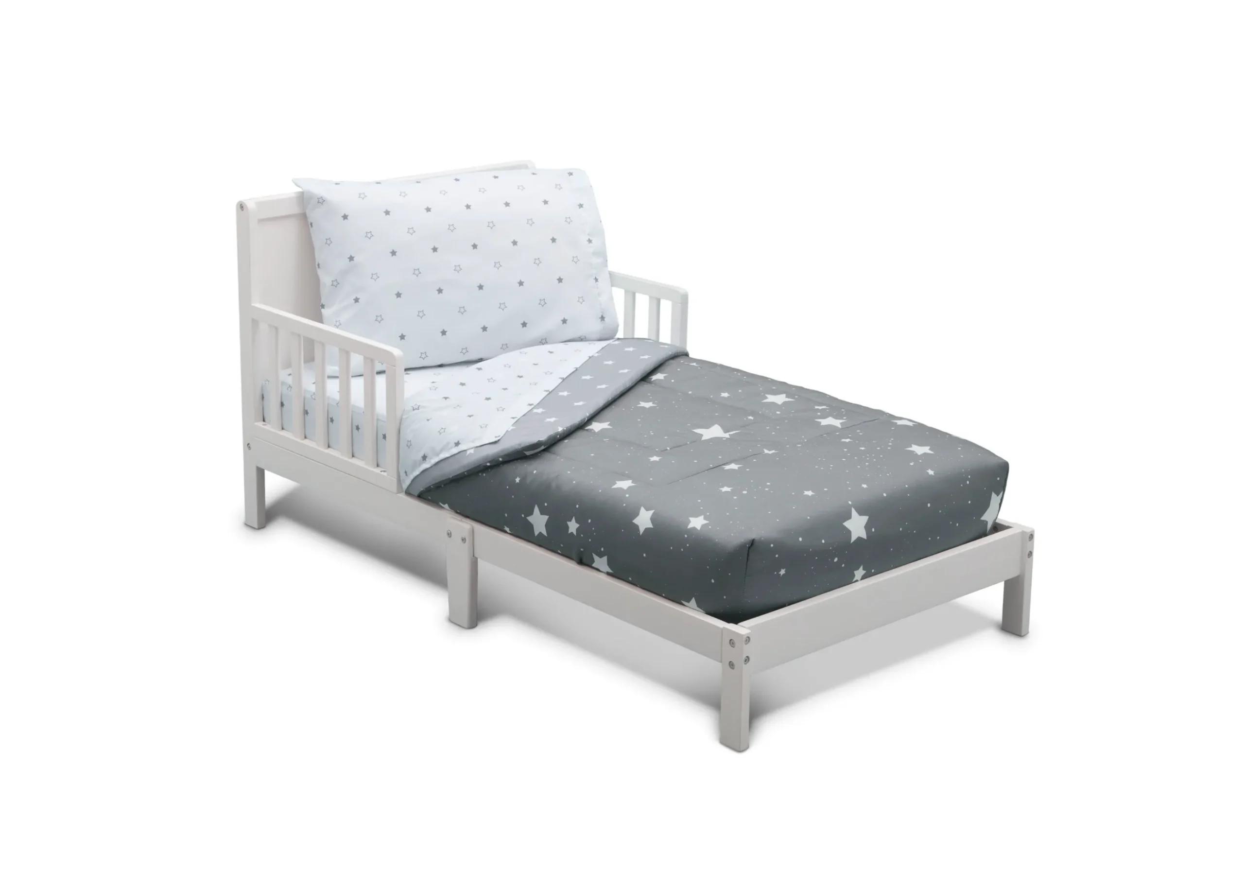 - WHAT’S INCLUDED: This 4-piece reversible toddler boy bedding set includes: reversible toddler comforter with elastic bottom, flat top sheet with elastic bottom, fitted bottom sheet and standard size pillowcase