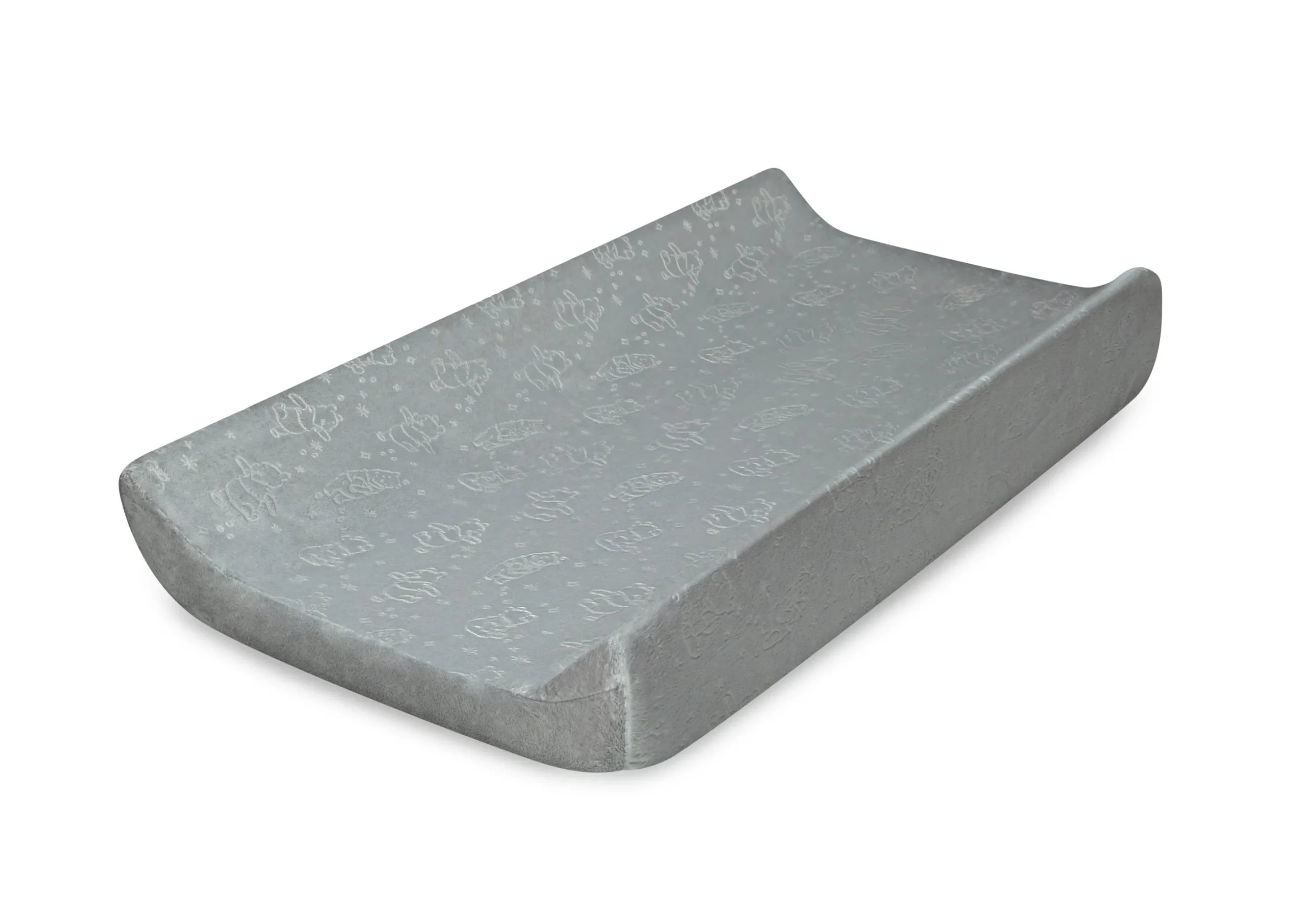 Make changing time extra sweet with this Disney Winnie the Pooh Contoured Changing Pad with Plush Cover by Delta Children. This set features a waterproof changing pad with curved edges, a non-slip bottom and safety strap with quick release buckle to keep your baby securely in place, as well as a snuggly-soft plush cover with an embossed Winnie the Pooh pattern. For your convenience, the plush cover is machine washable and the outer vinyl layer on the changing pad is waterproof which can be easily wiped clean with a damp cloth. Fits most standard changing tables and dressers. Ships in a small box, please allow 24 hours for changing pad to expand before use.