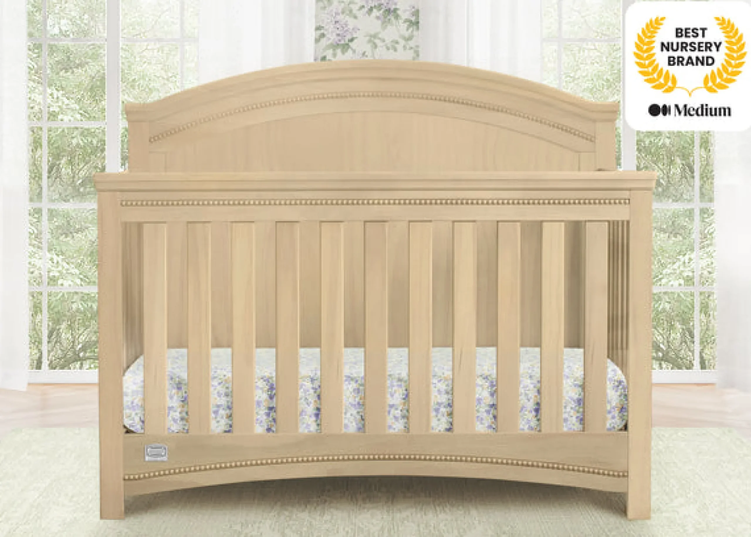 - Fits standard size crib mattress (sold separately)