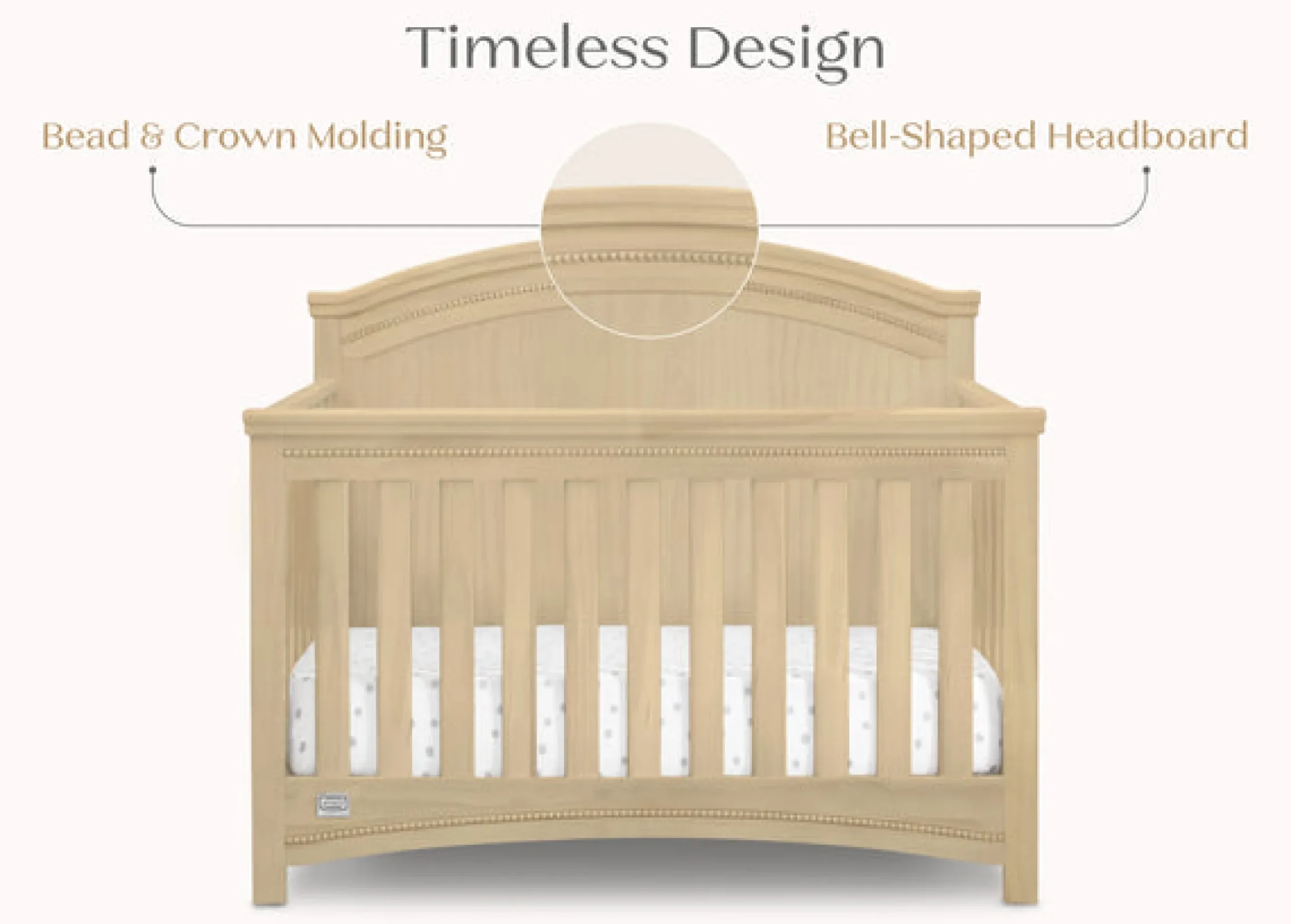 Nothing can compare to the enduring elegance of the Emma Crib ‘N’ More from Simmons SlumberTime. Classic architectural detailing, bead and crown molding, as well as a solid, bell-shaped headboard provide a sophisticated foundation that stands the test of time. An heirloom-quality piece, this crib easily grows alongside Baby with its three mattress heights that allow you to lower it as your child matures. Plus, once your little one has outgrown the need for a crib, it converts into a toddler bed, daybed, and then finally, a full size bed.