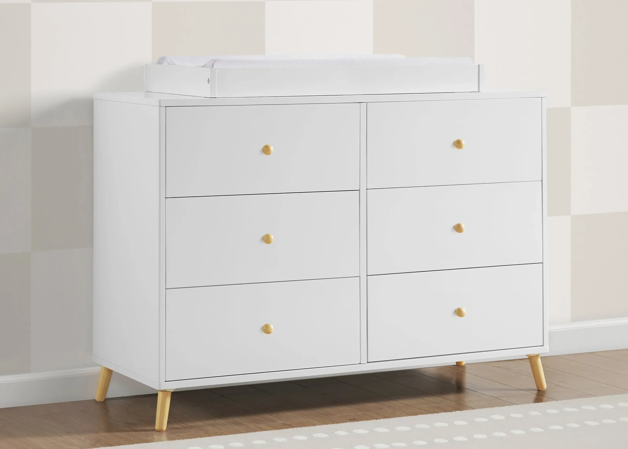 This dresser features 6 drawers for plenty of storage space. To convert your dresser into a convenient changing table purchase the Delta Children #W100810 Topper (sold separately)