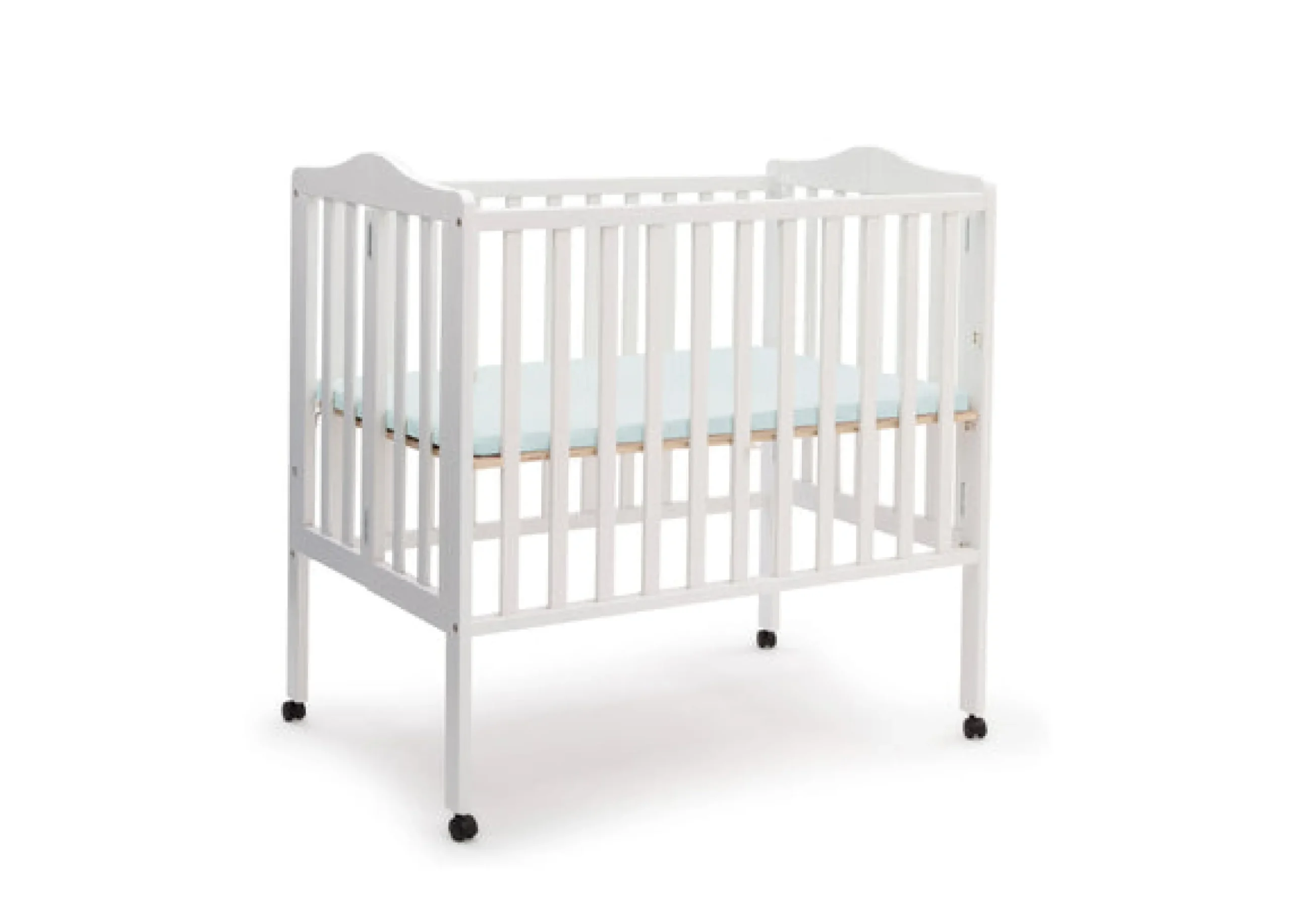 Great for small spaces or as a travel crib, the Portable Folding Crib with Mattress from Delta Children is well built and versatile. Its rolling casters allow for easy movement throughout the home, so you can keep your baby nearby at all times. And, when you’re on the go, it’s easier than ever to provide a safe and comfy sleep space for your little one. Made from durable wood, it easily folds up, making it perfect for transport. Designed for convenience, the Portable Folding Crib with Mattress from Delta Children includes everything needed for a good night’s sleep.