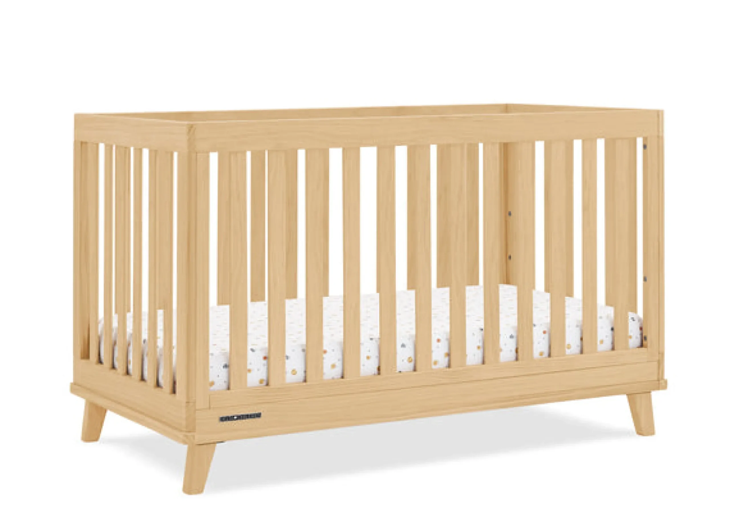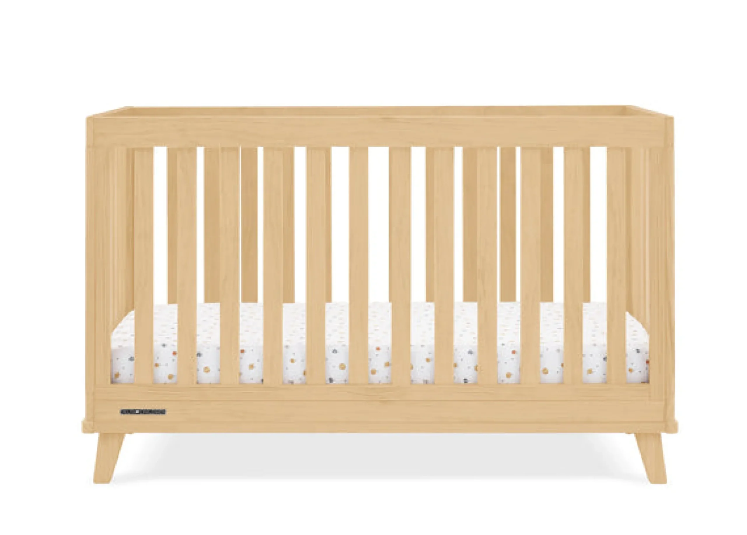 You’ll love the modern mid-century design vibe of Frankie 4-in-1 Convertible Baby Crib—from the clean lines to the angled stance of the legs