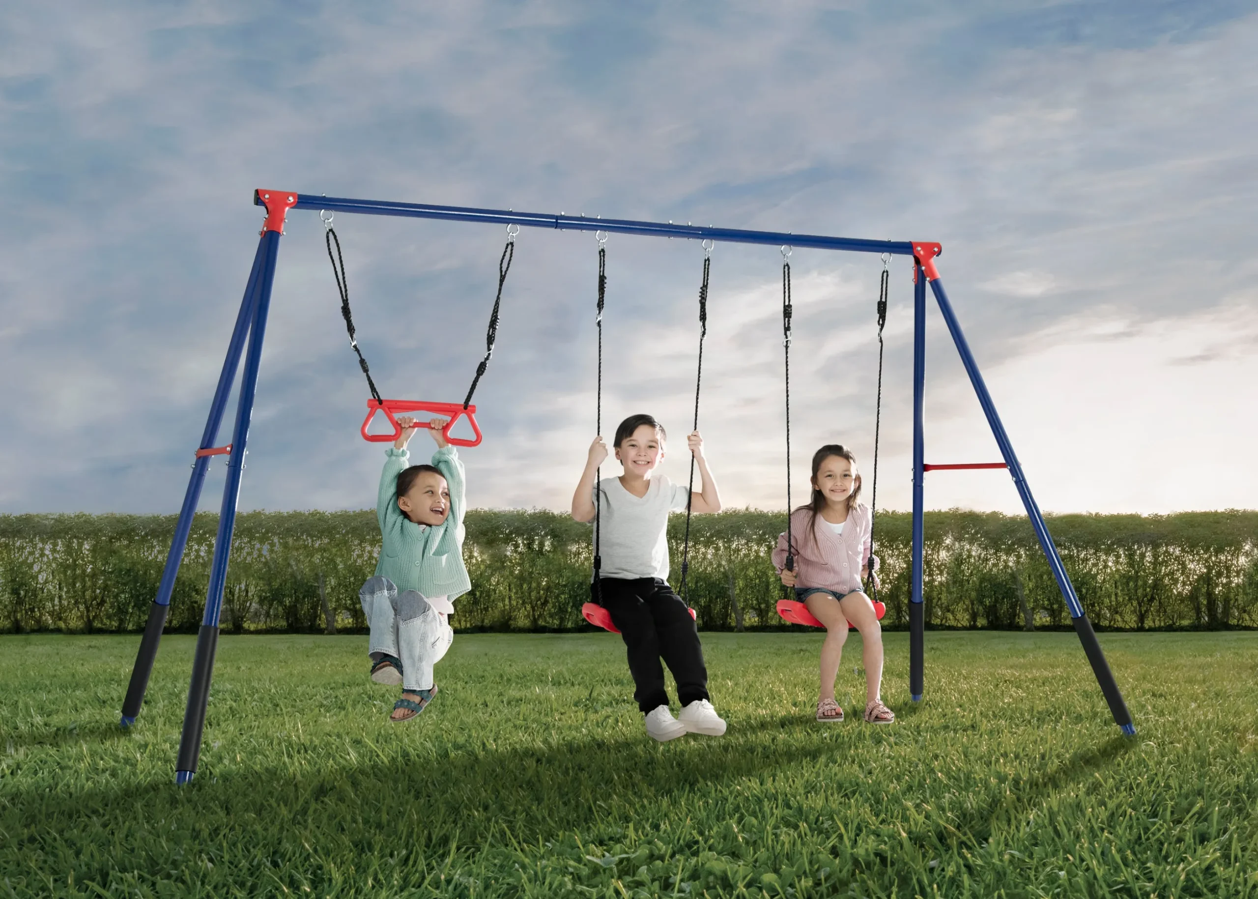 - Swing set meets or exceeds ASTM safety standards for residential playground equipment