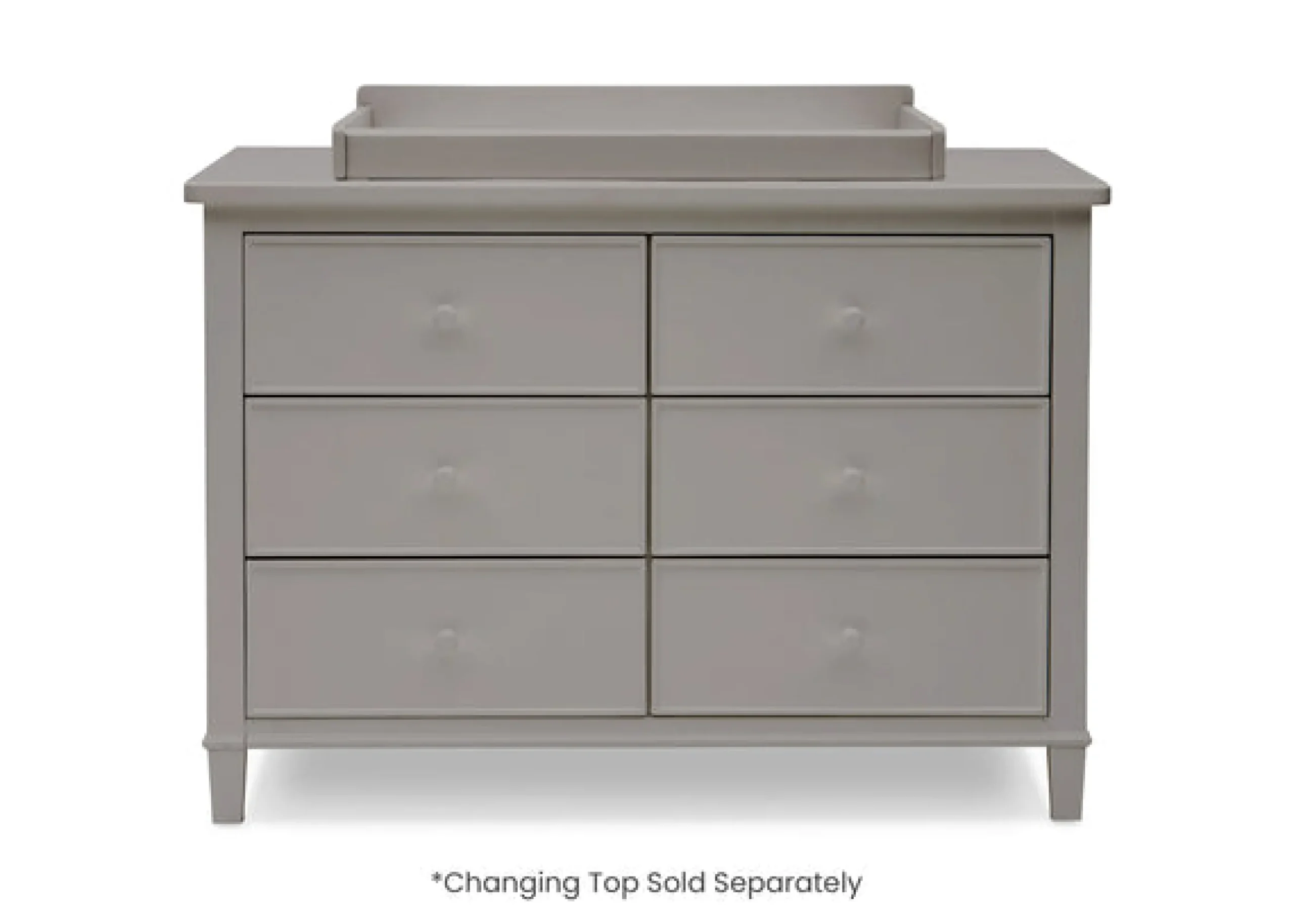 This dresser features 6 drawers for plenty of storage space. To convert your dresser into a convenient changing table purchase the Delta Children #0550 Topper (sold separately)