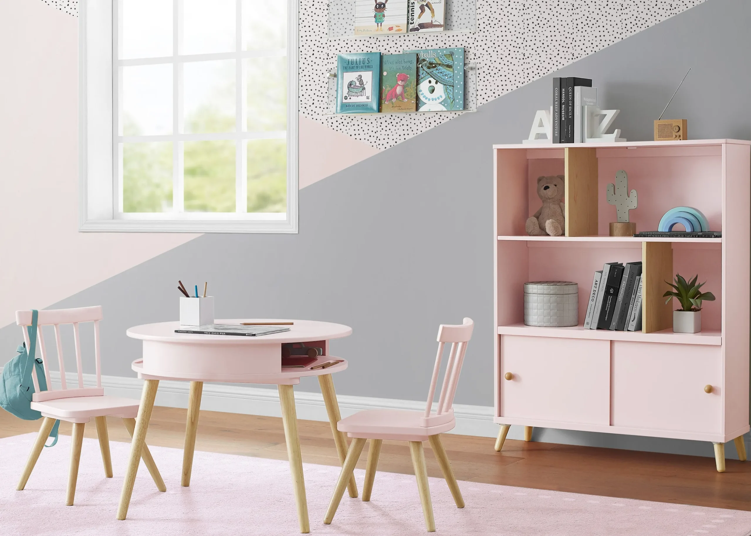 The Hudson Storage Table & 2-Piece Chair Set for Kids by Delta Children is a modern playroom essential where little ones can carve out a space of their own to read, eat or create. The set features a two-tone look, giving it a neutral aesthetic that can coordinate anywhere in the house. A built-in cubby compartment under the tabletop that can be used to hold your child’s toys, art supplies, books and more provides easy-to-access storage. Plus, this table and chair set is GREENGUARD Gold Certified, which means it’s built to contribute to safer, healthier indoor air.