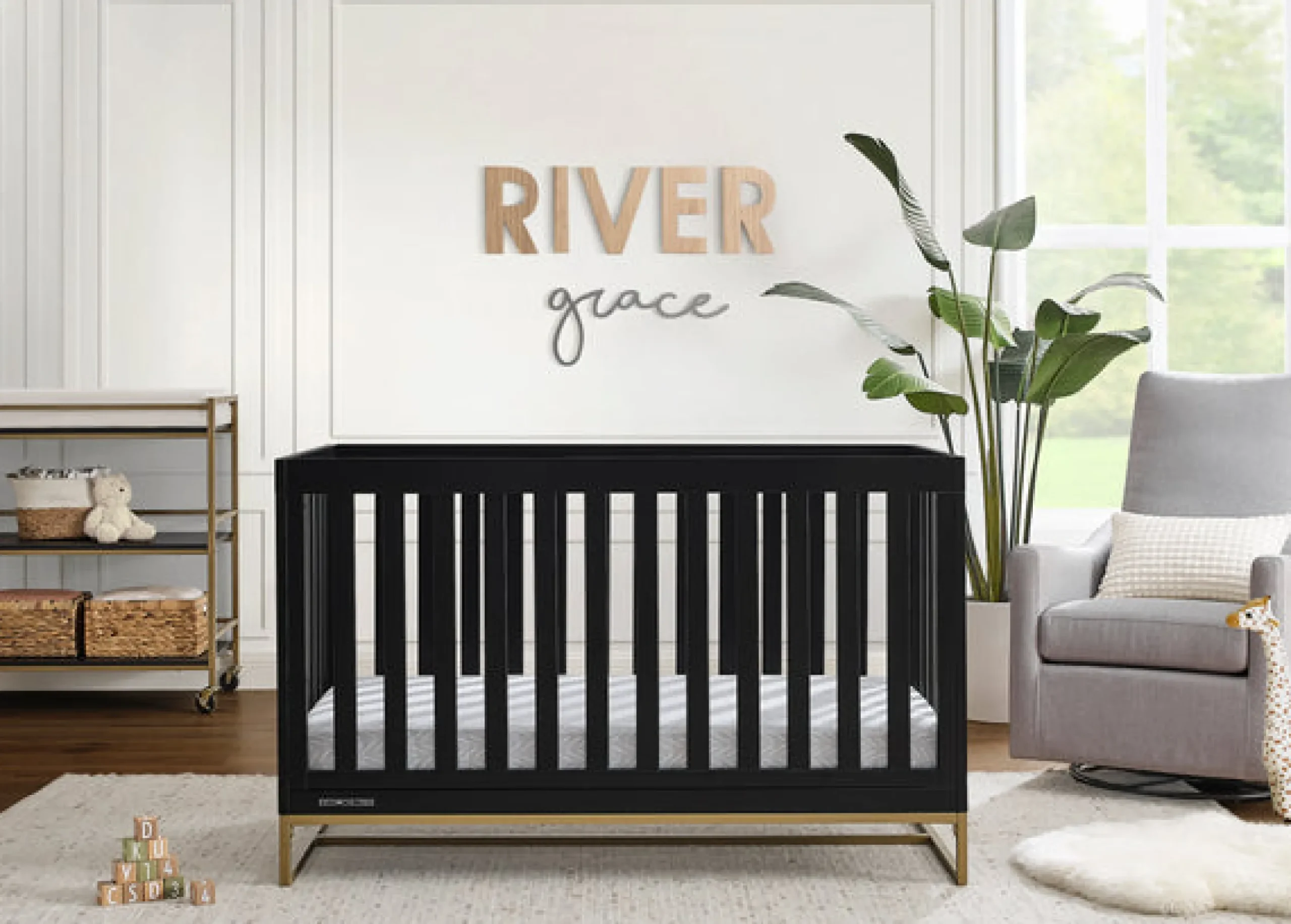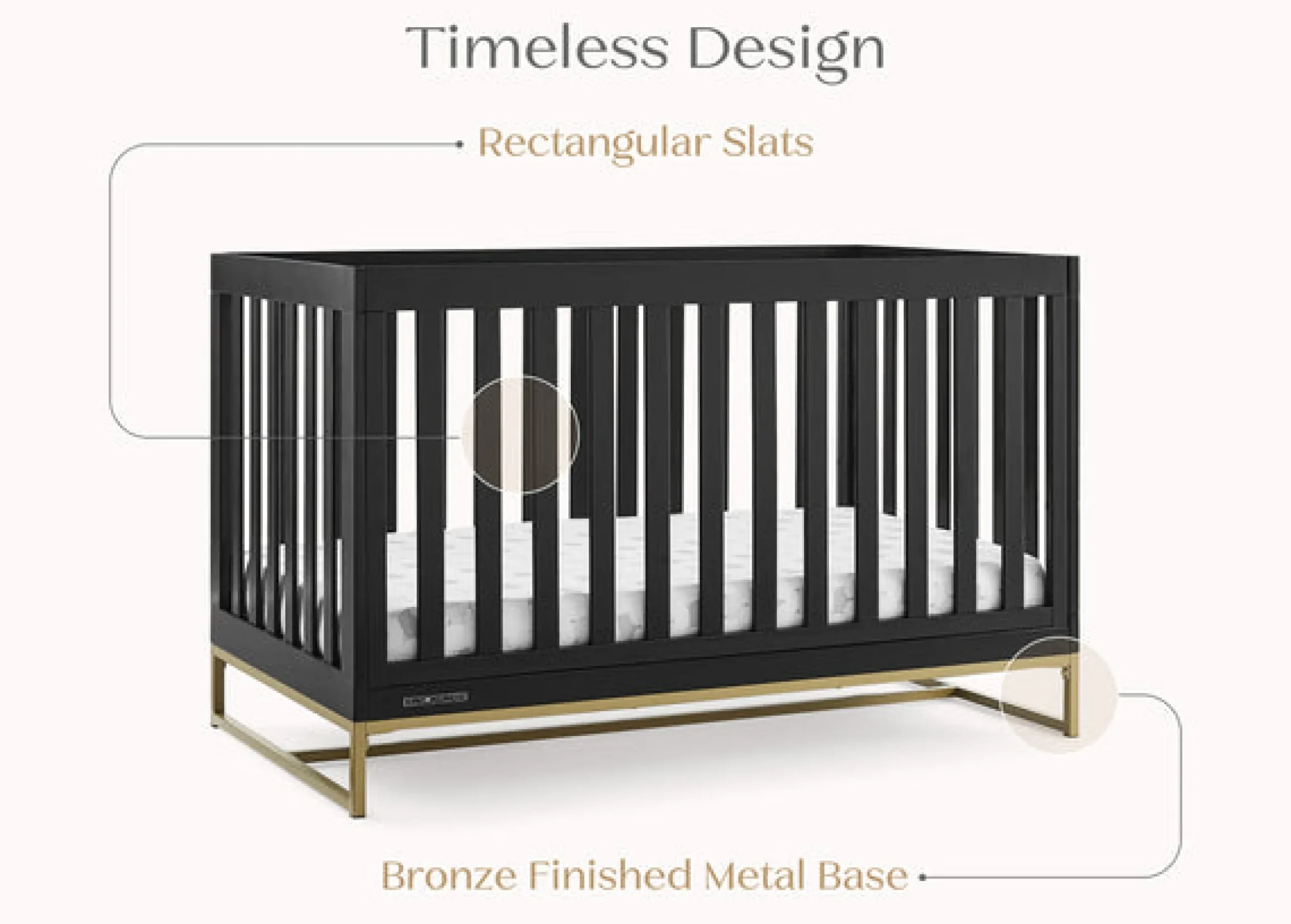 The Jade 4-in-1 Convertible Crib is the new gold standard for modern nurseries with its gorgeous bronze metal base.