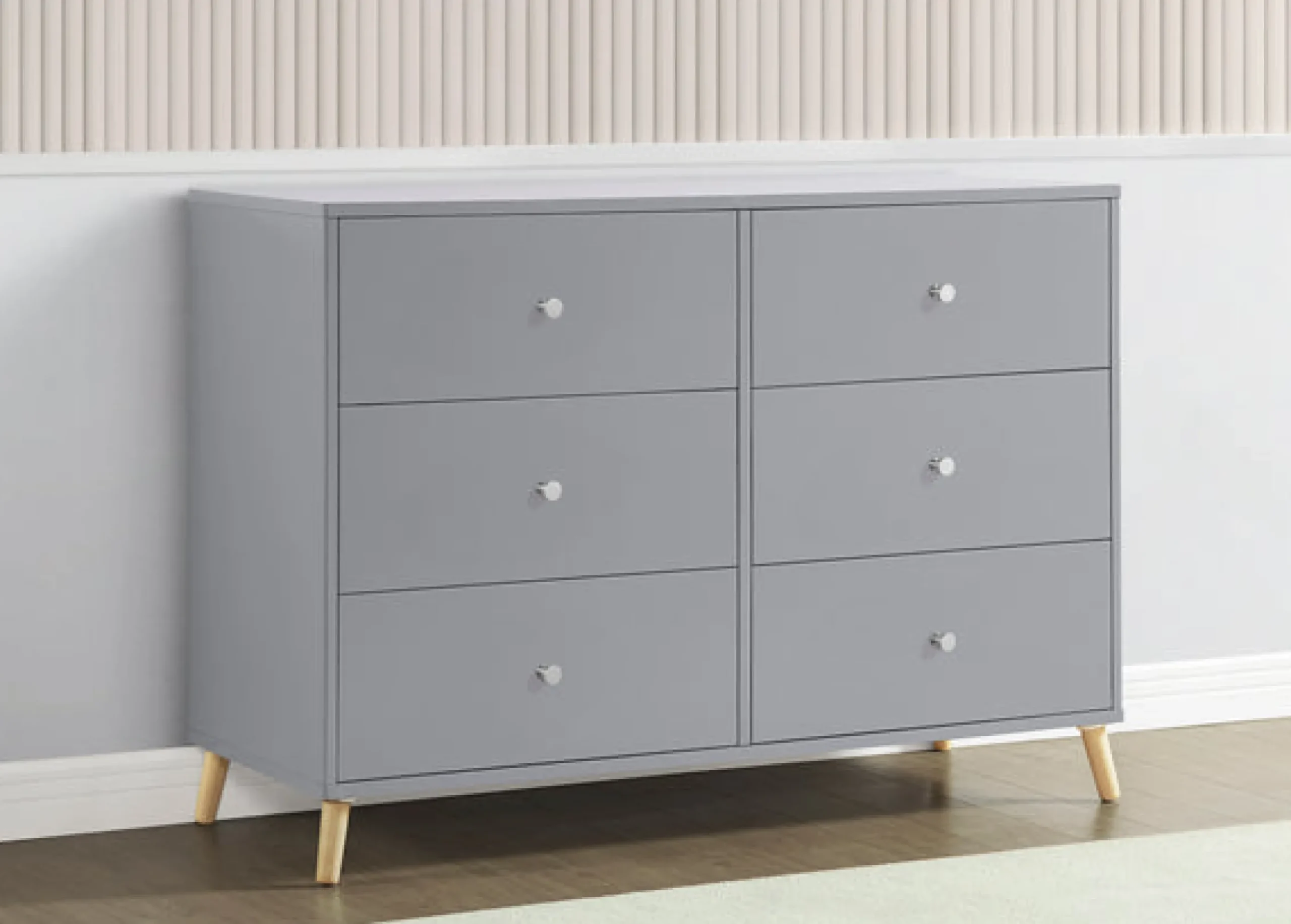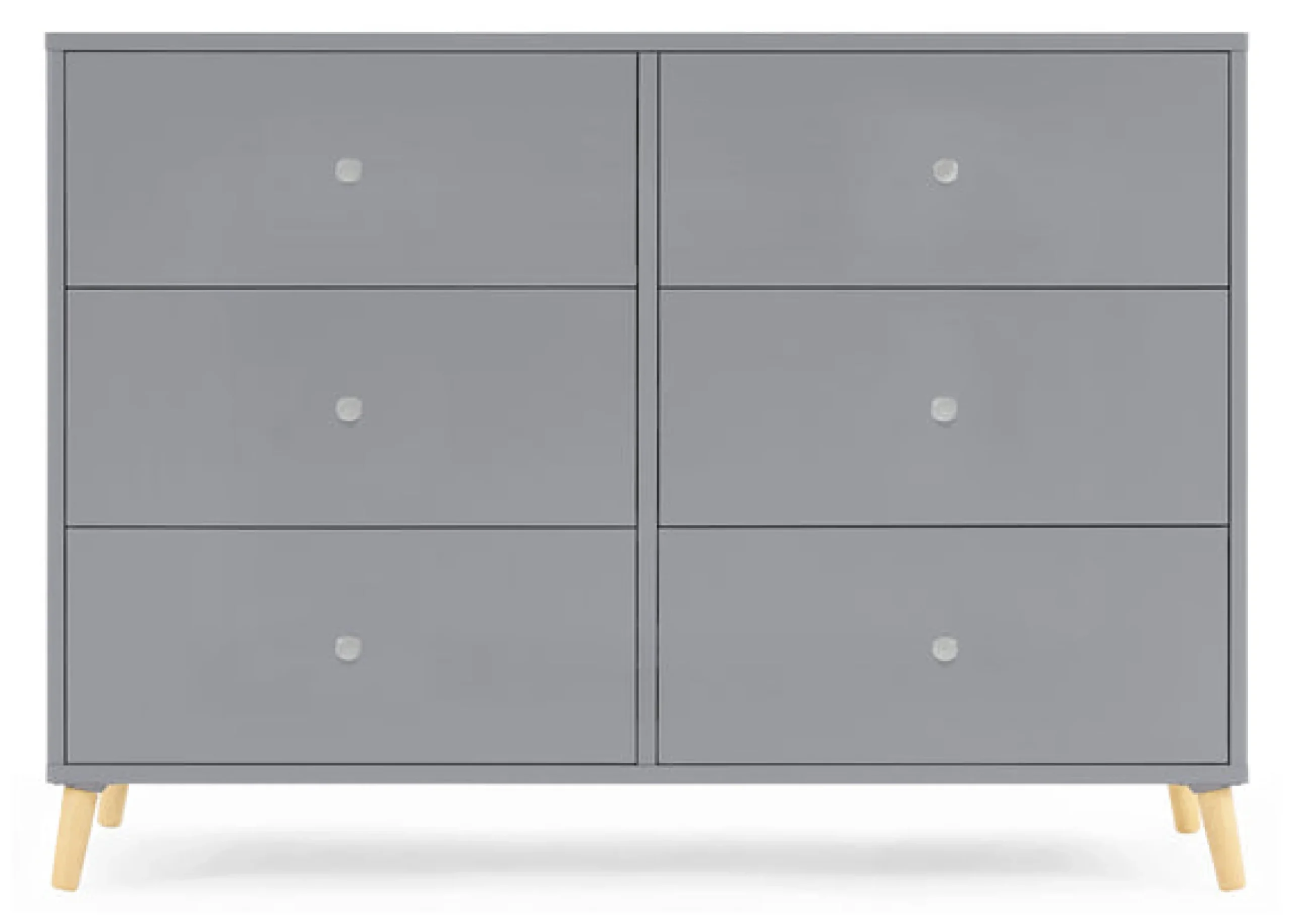 Designed to elevate modern nurseries or bedrooms,the Jordan 6 Drawer Dresser is the perfect accompaniment to your Jordan 4-in-1 Crib with its angled feet and two-toned detailing