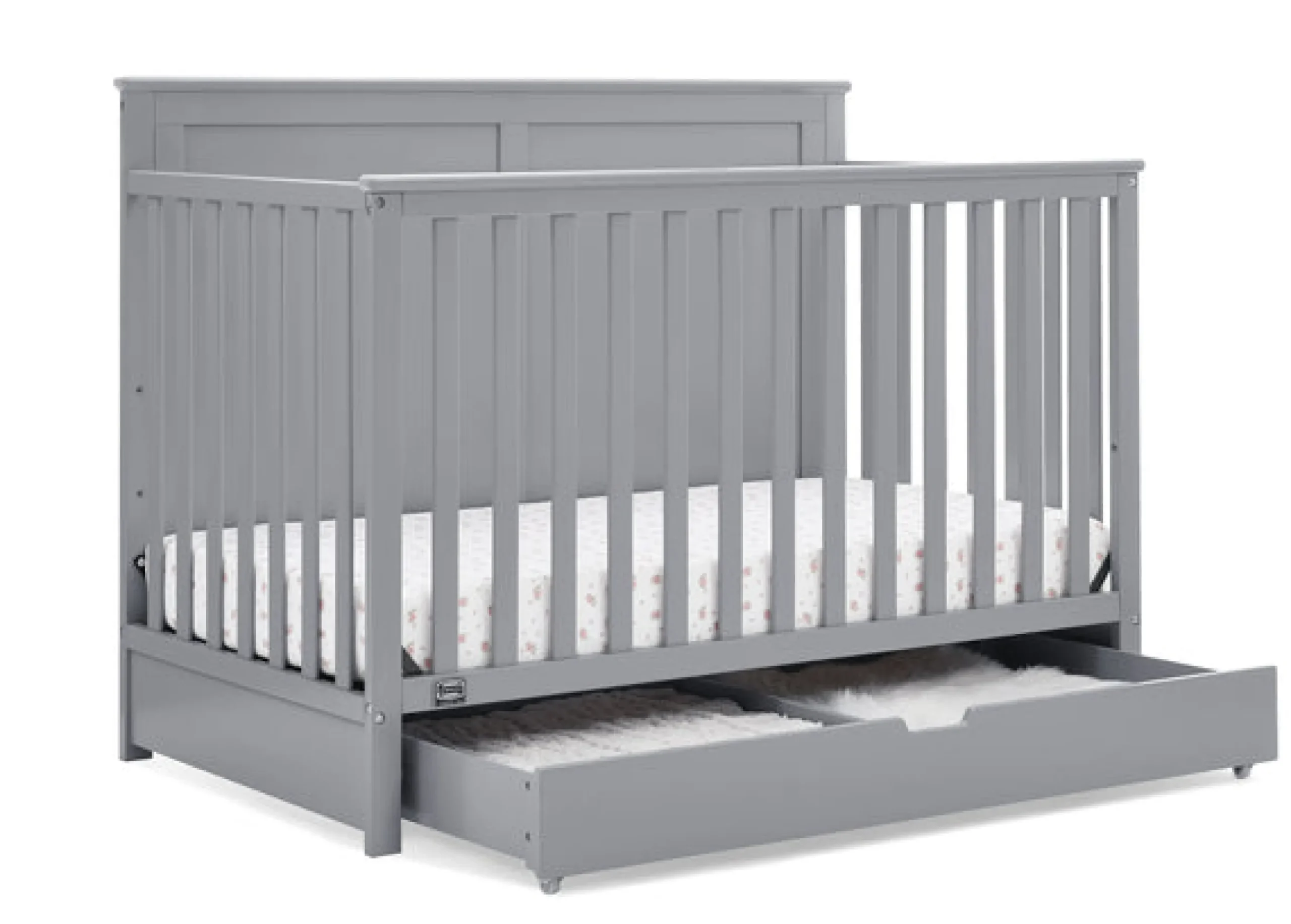 Outfitted with a spacious drawer with two compartments for all your storage needs, this crib allows you to keep clothing and essentials close at hand