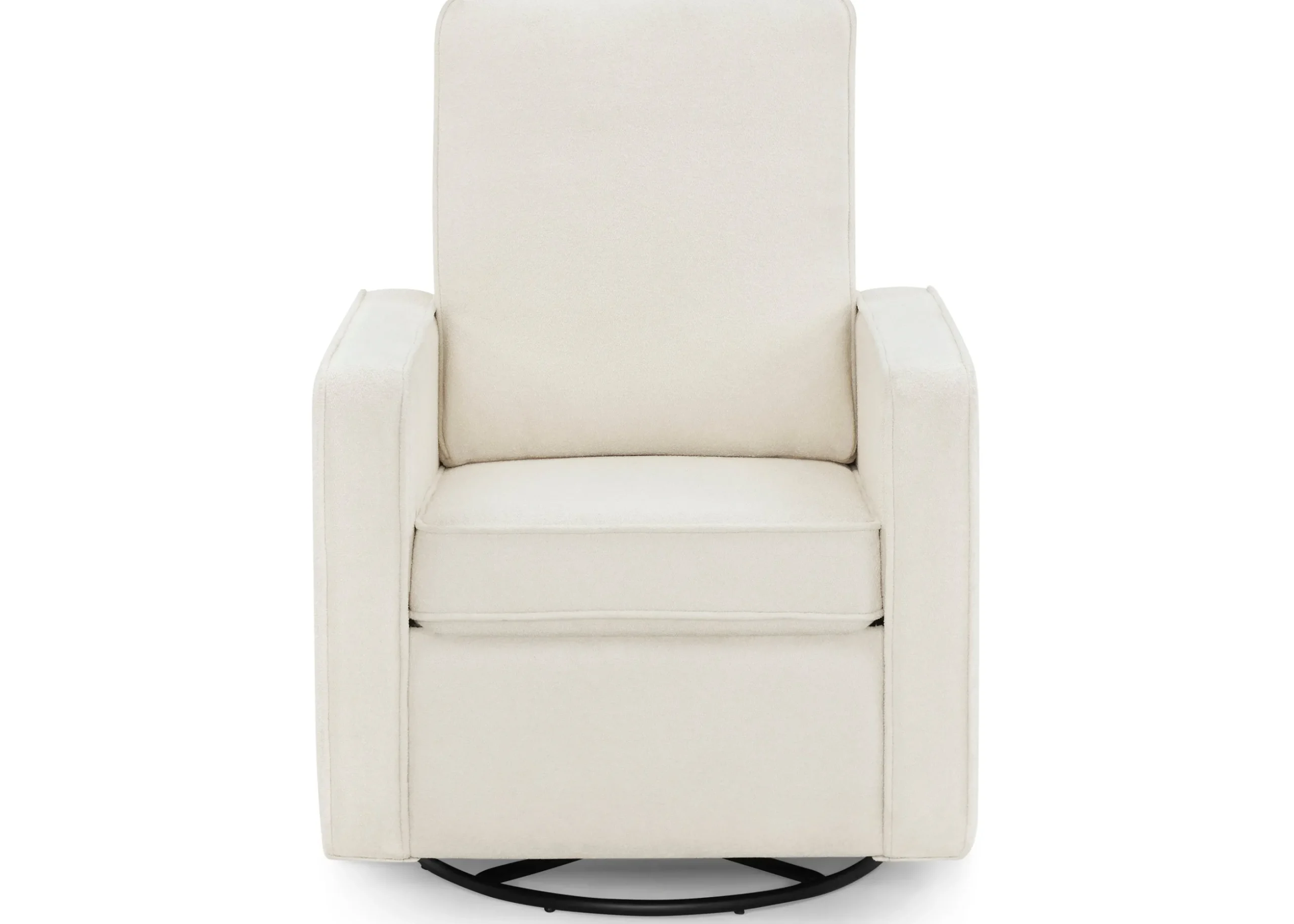 A necessity for feeding, playing and bonding with your baby, the Luna Nursery Swivel Glider by Delta Children is an inviting spot. Designed with a high back, square arms and generous cushions, this glider is the perfect balance of modern style and relaxing comfort. The smooth gliding mechanism and 360-degree swivel provides a soothing motion that helps little ones fall asleep. Upholstered in an elegant boucle fabric that’s soft to the touch, the Luna Glider will look great in any space because it’s built to last—through pets, kids, busy lives, and more. Remarkably soft without compromising style or comfort, the fabric on this glider is water and stain resistant for simple clean up from mishaps. Made without PFCs or other toxins, this advanced, environmentally friendly fabric finish protects from spills without using forever chemicals that harm your health or the planet. Plus, the fabric is GREENGUARD Gold Certified and OEKO-TEX STANDARD 100, which means it contributes to healthier indoor air.
