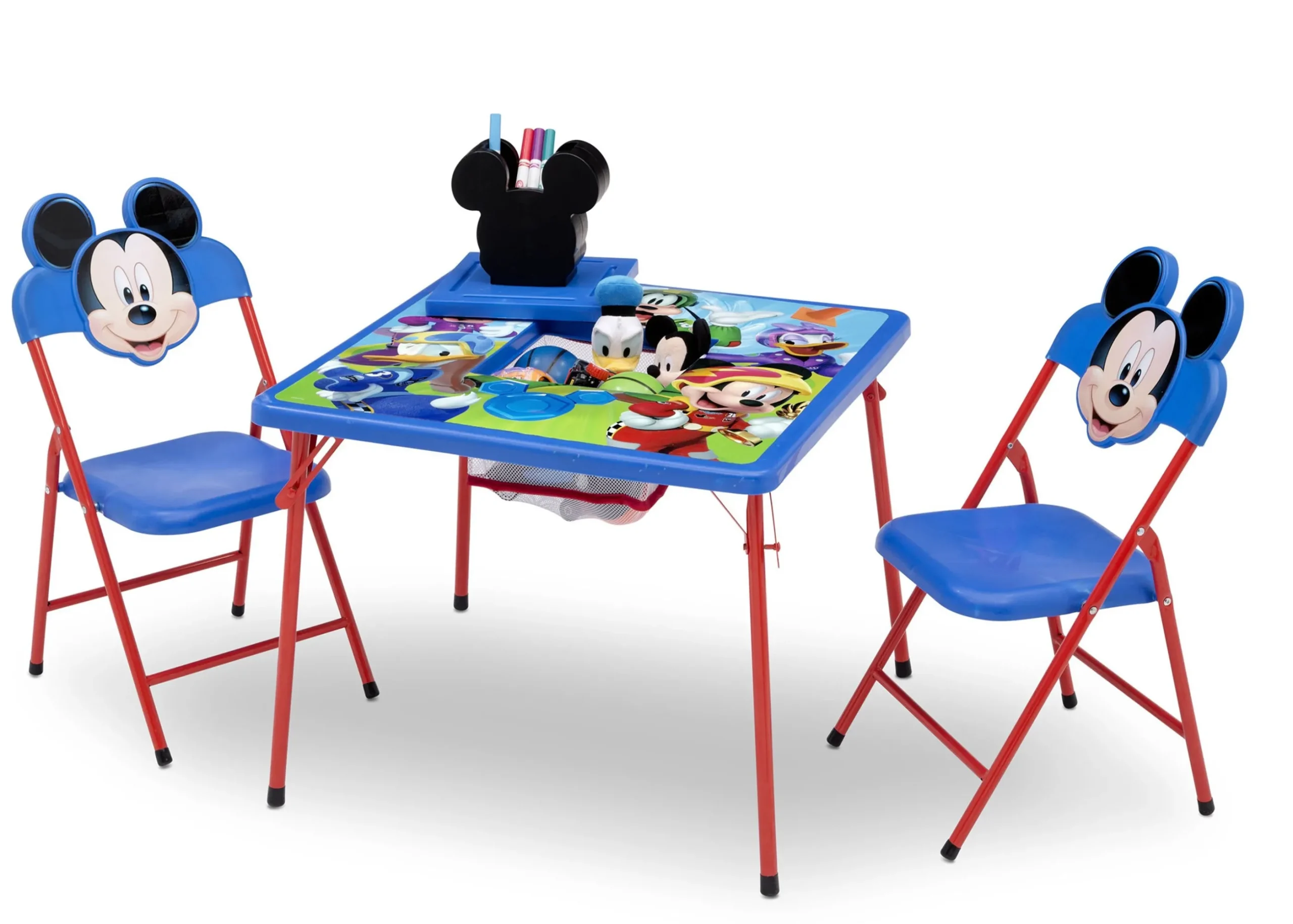 Two kid-size chairs featuring Mickey Mouse coordinate perfectly with the play table