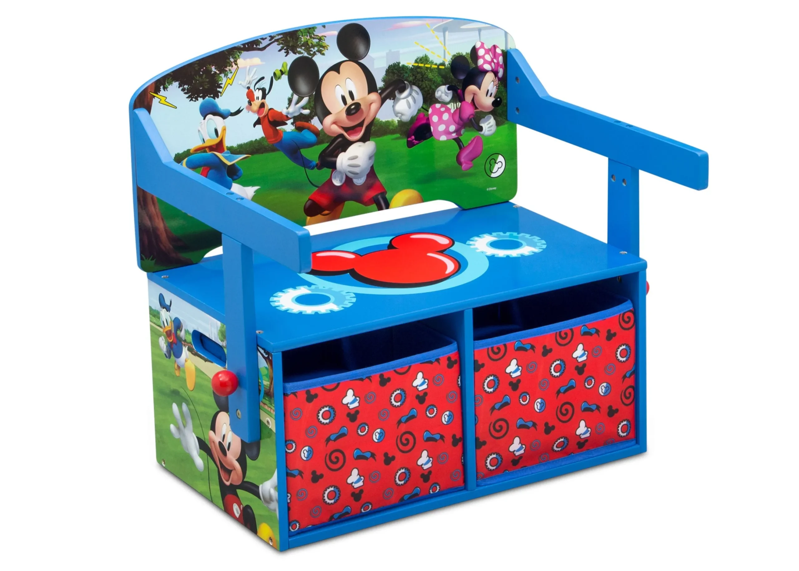 Bring home the fun-loving charm of the Mickey Mouse Activity Bench. It’s 2-in-1 design converts from a storage bench to a desk in seconds. An adorable addition to your child’s Clubhouse, this clever activity bench will have your child smiling from ear-to-ear when they see the colorful graphics of Mickey, Minnie, Donald Duck and the rest of the lively bunch.