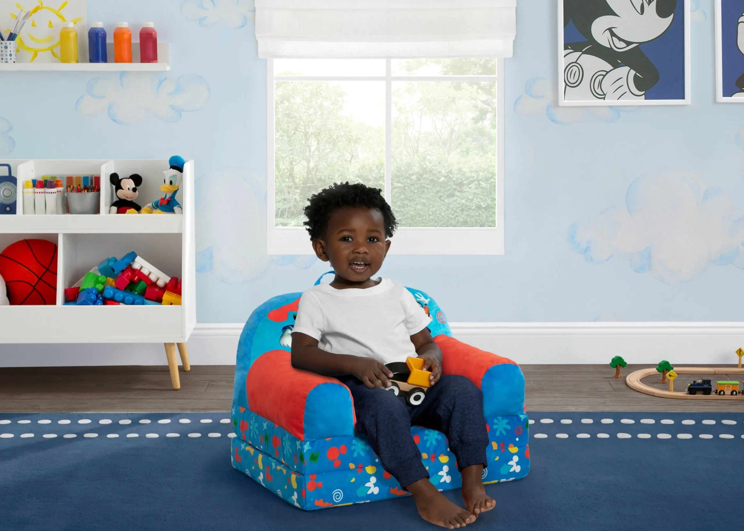 Two comfy seats in one, the Mickey Mouse Cozee Buddy Flip-Out Chair by Delta Children will surely be their favorite spot to relax. They’ll love to sit and read or watch their favorite movies on the chair but when it’s time for a nap, this seat flips out into a sleeper bed so they can stretch out. Designed to easily move anywhere in the house, this cozy toddler chair features a carry handle and secure hook and loop closure that ensures the chair keeps its shape. Plus, this chair is GREENGUARD Gold Certified, which means it’s built to contribute to cleaner air for a healthy home.
