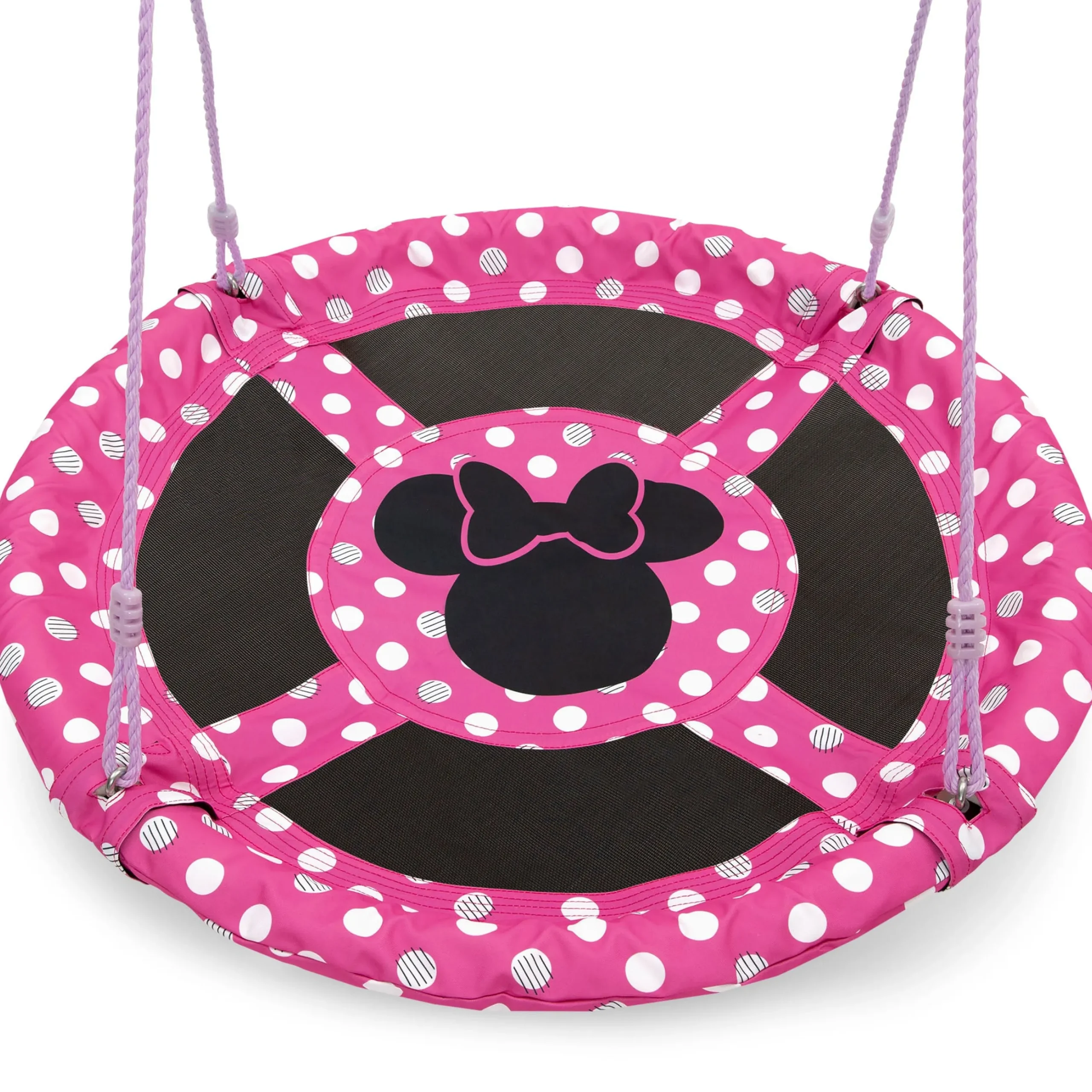 Bold, colorful graphics of Minnie Mouse make this saucer swing a must-have for any Minnie fan