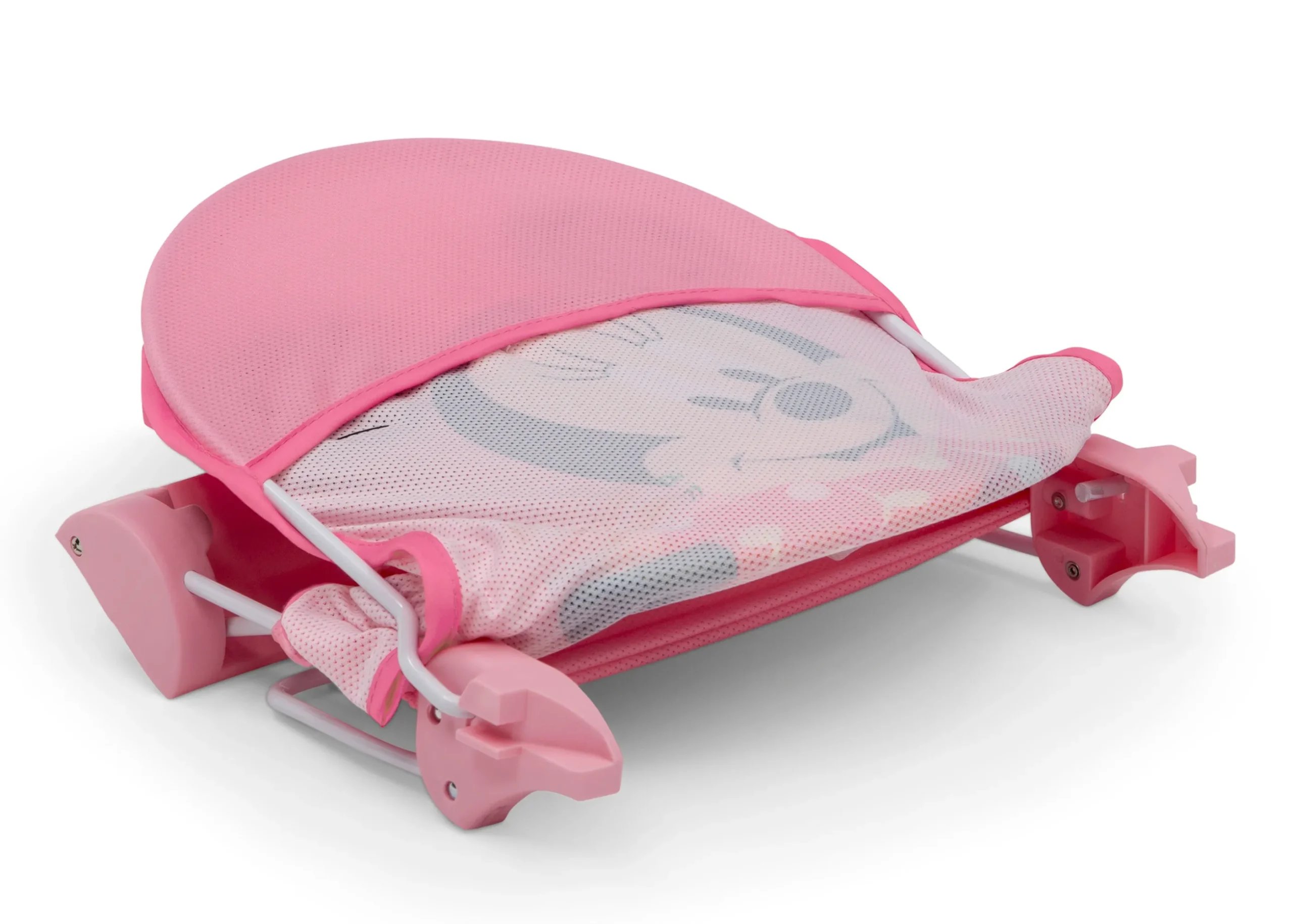 Cute as a button (and a bow!), this Disney Minnie Mouse Baby Bather by Delta Children provides a safe place to bathe your newborn. The bather’s soft mesh material is gentle on baby’s delicate skin and is easy to clean—the slightly inclined design ensures your baby is in a secure position throughout bath time. Minnie’s 3D ears and bow provide needed head support and an extra dose of style. Use it in your sink or bath tub. The bather’s compact fold is convenient for storage or travel.