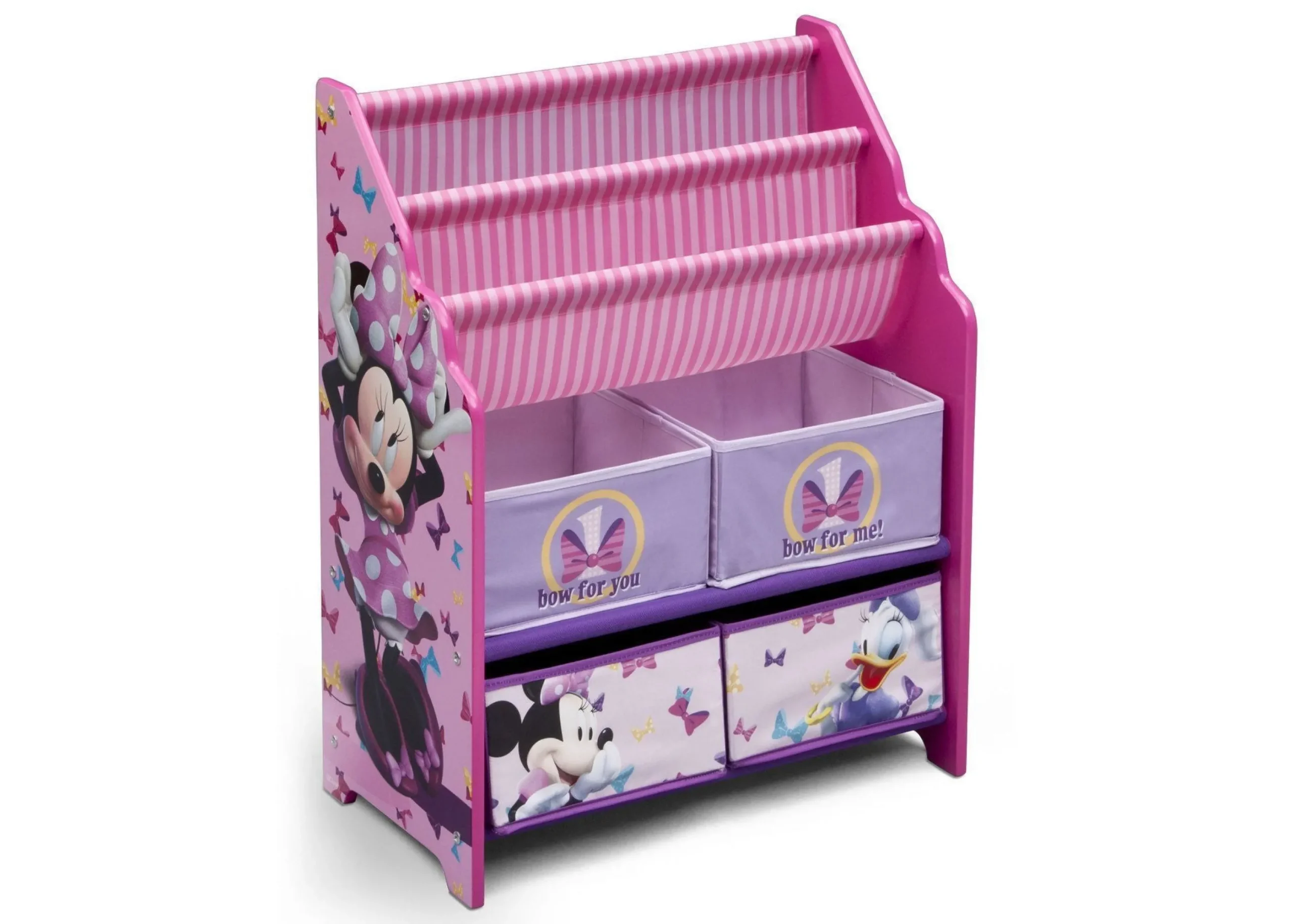 Make her play space as sweet as can be with a little help from the Minnie Mouse Book & Toy Organizer from Delta Children! Perfect for keeping toys and reading materials organized, it features medium sized bins and two tiers for displaying books and magazines.