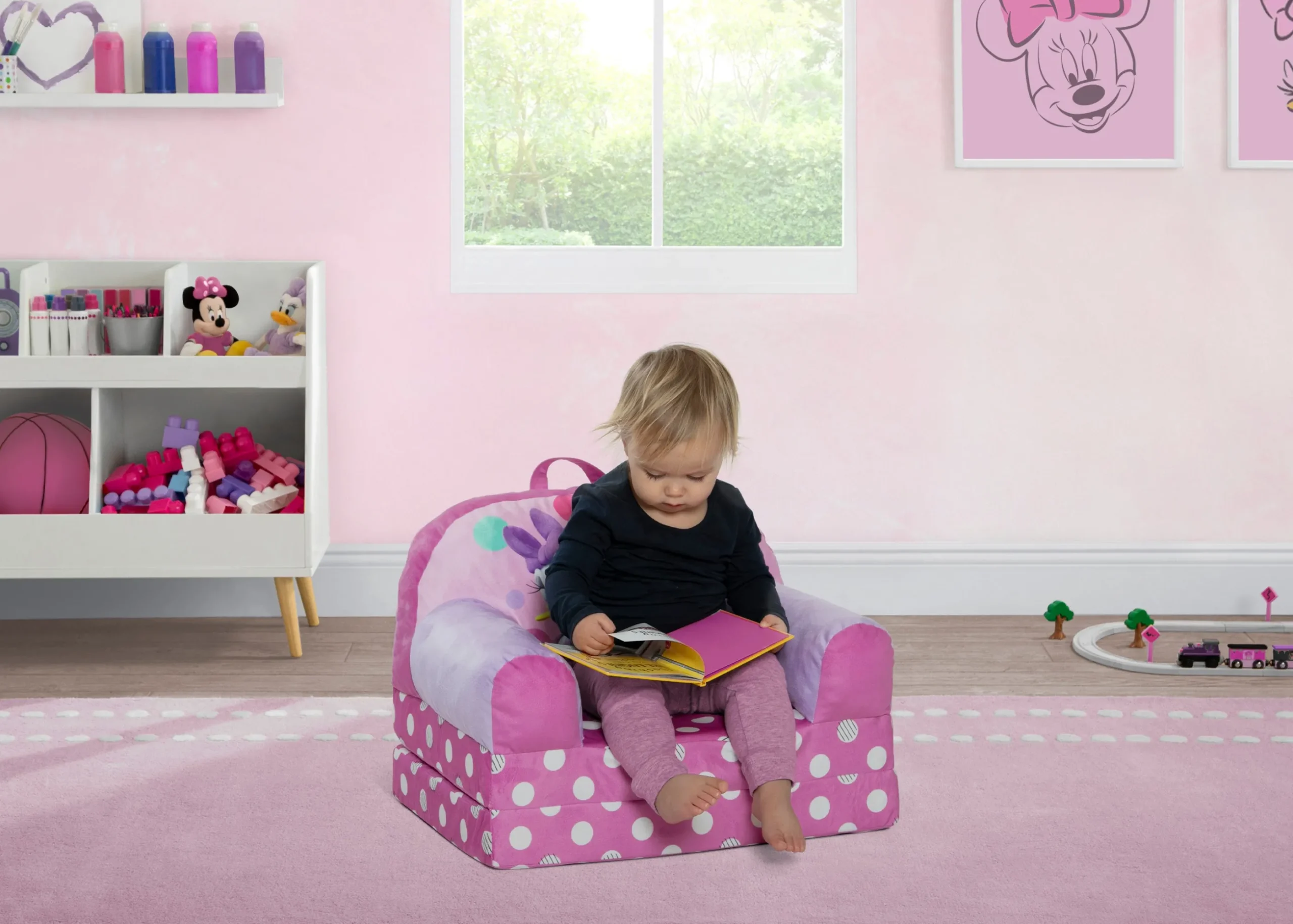 Two comfy seats in one, the Minnie Mouse Cozee Buddy Flip-Out Chair by Delta Children will surely be their favorite spot to relax. They’ll love to sit and read or watch their favorite movies on the chair but when it’s time for a nap, this seat flips out into a sleeper bed so they can stretch out. Designed to easily move anywhere in the house, this cozy toddler chair features a carry handle and secure hook and loop closure that ensures the chair keeps its shape. Plus, this chair is GREENGUARD Gold Certified, which means it’s built to contribute to cleaner air for a healthy home.