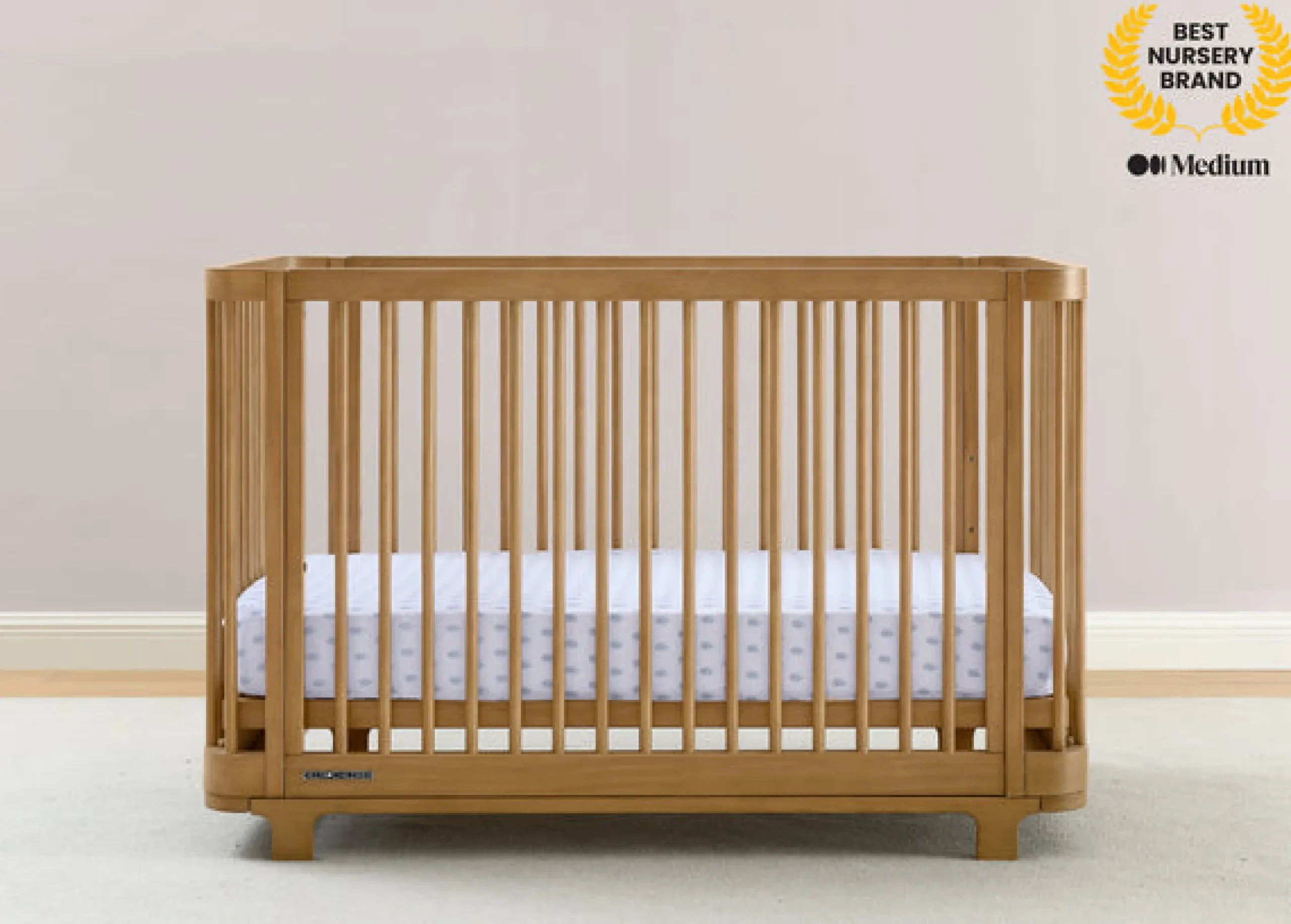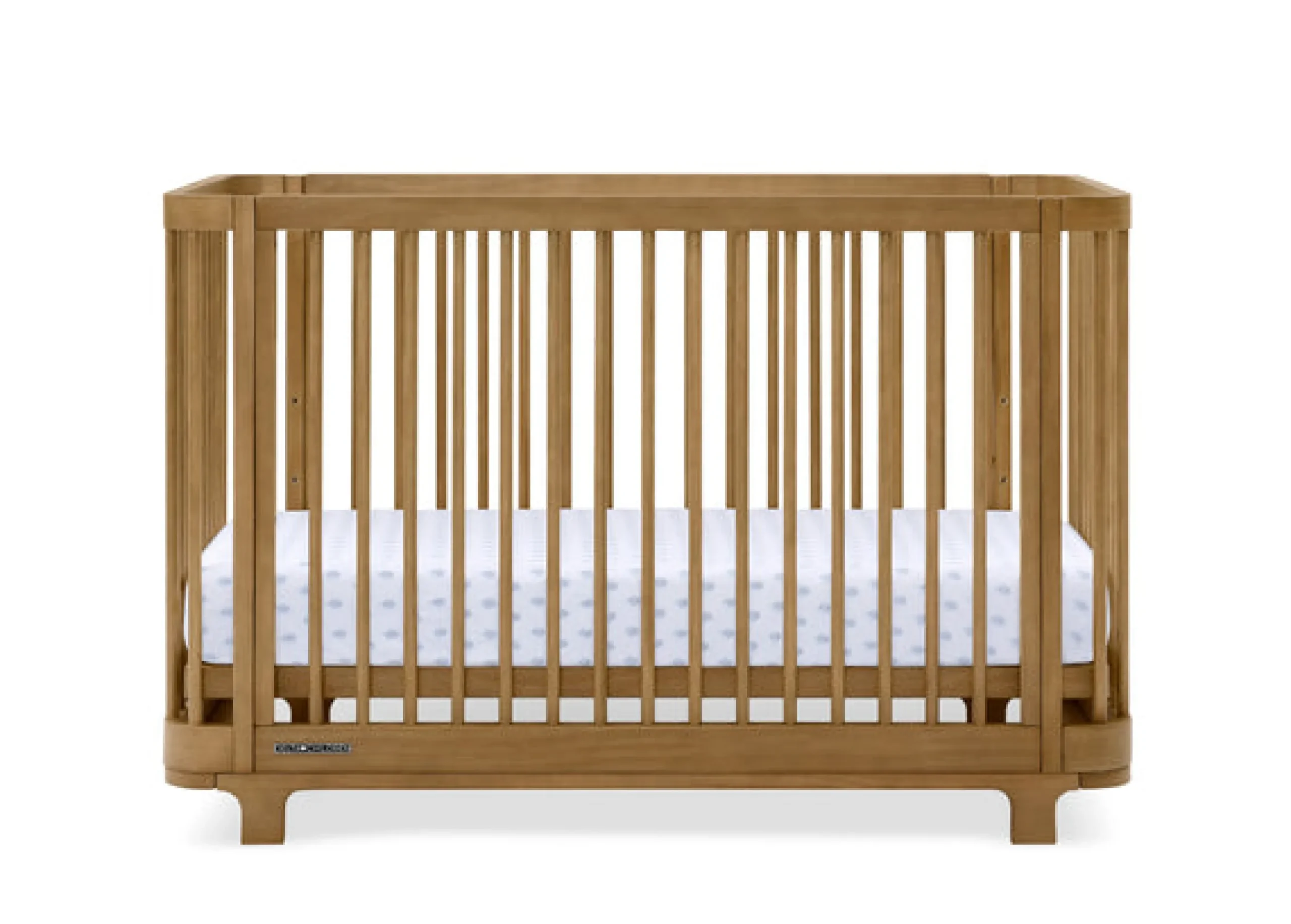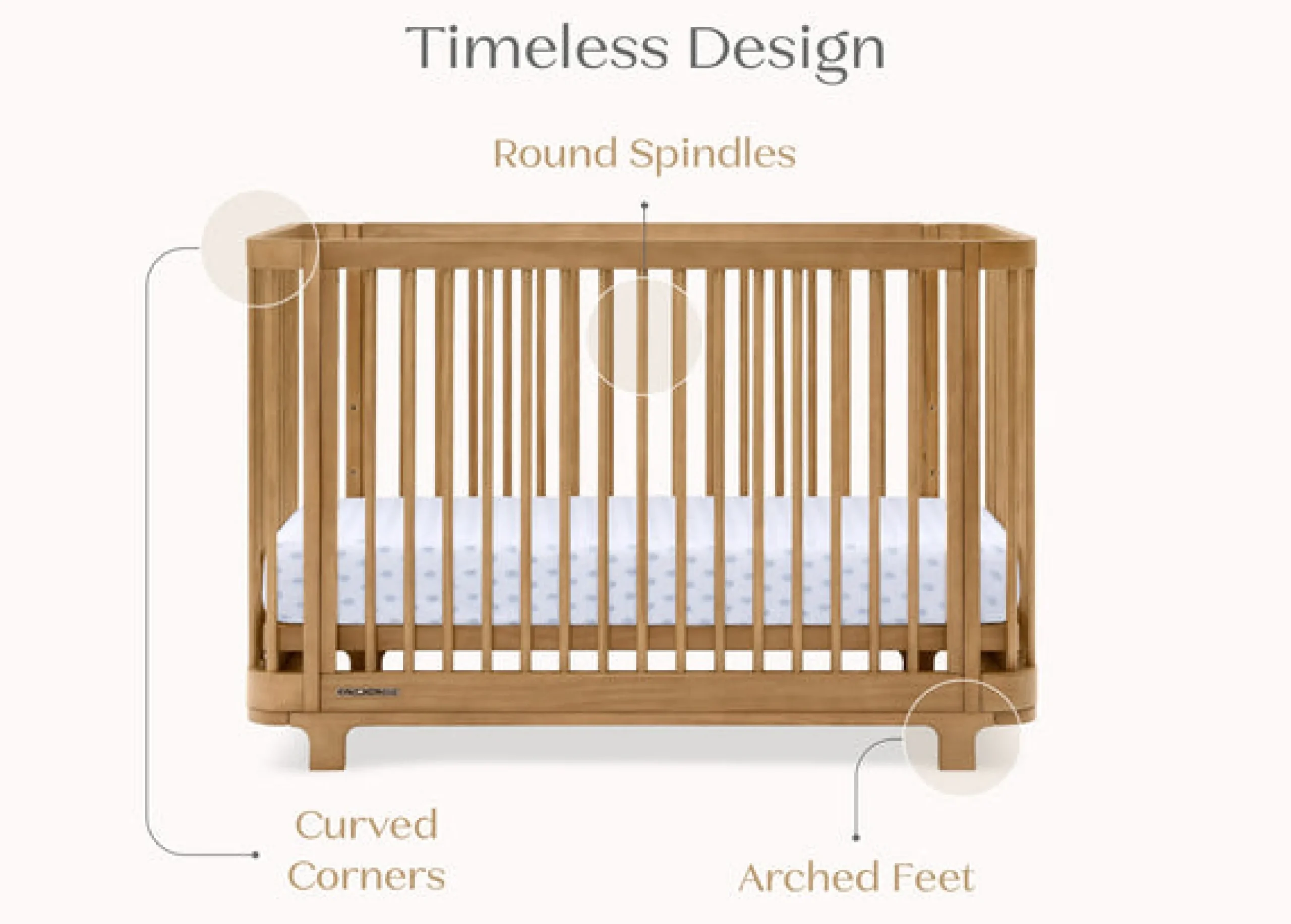 The Nest 4-in-1 Convertible Crib features gently curved corners, stylish rounded spindles and playfully arched feet to turn your nursery into a modern oasis
