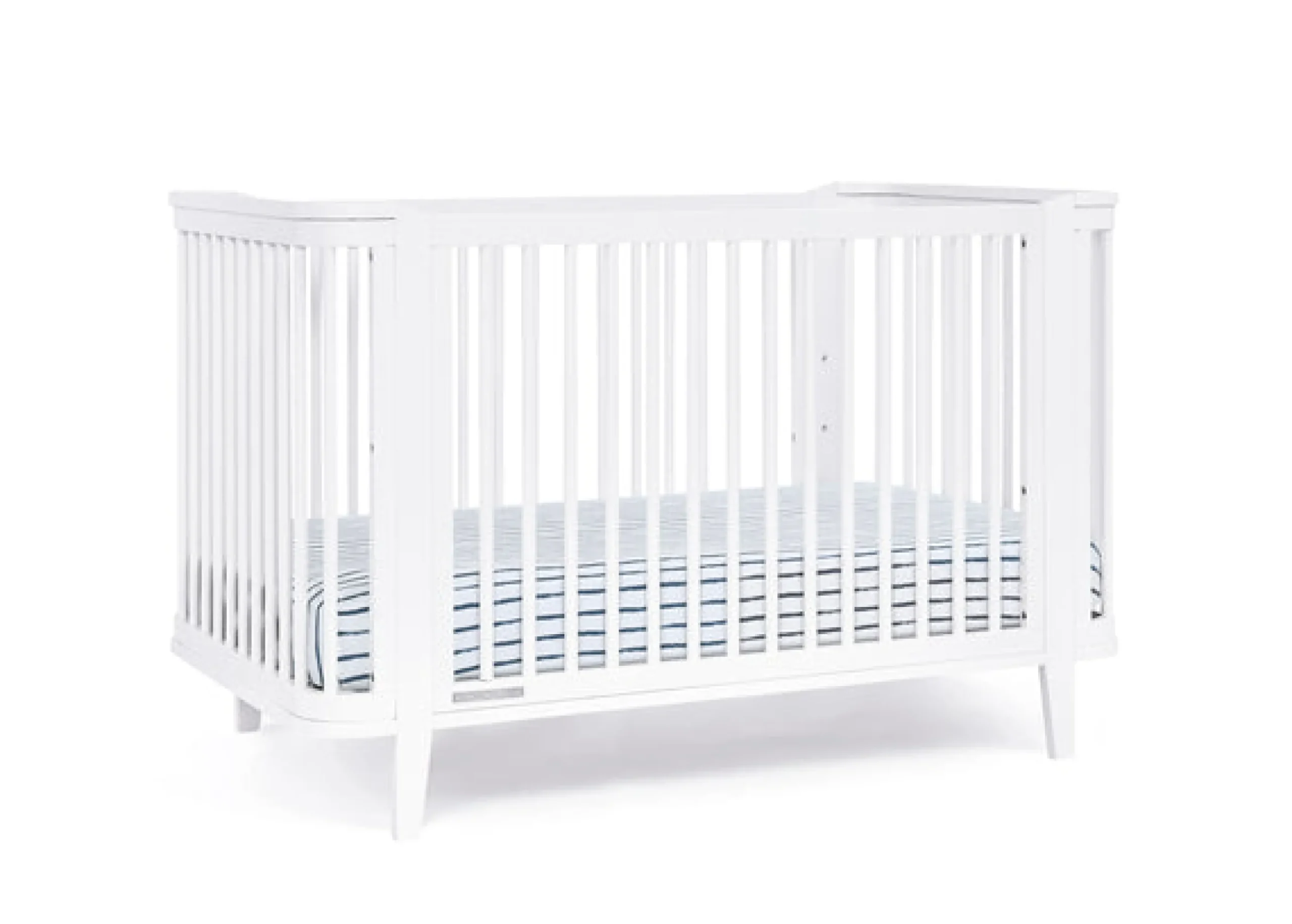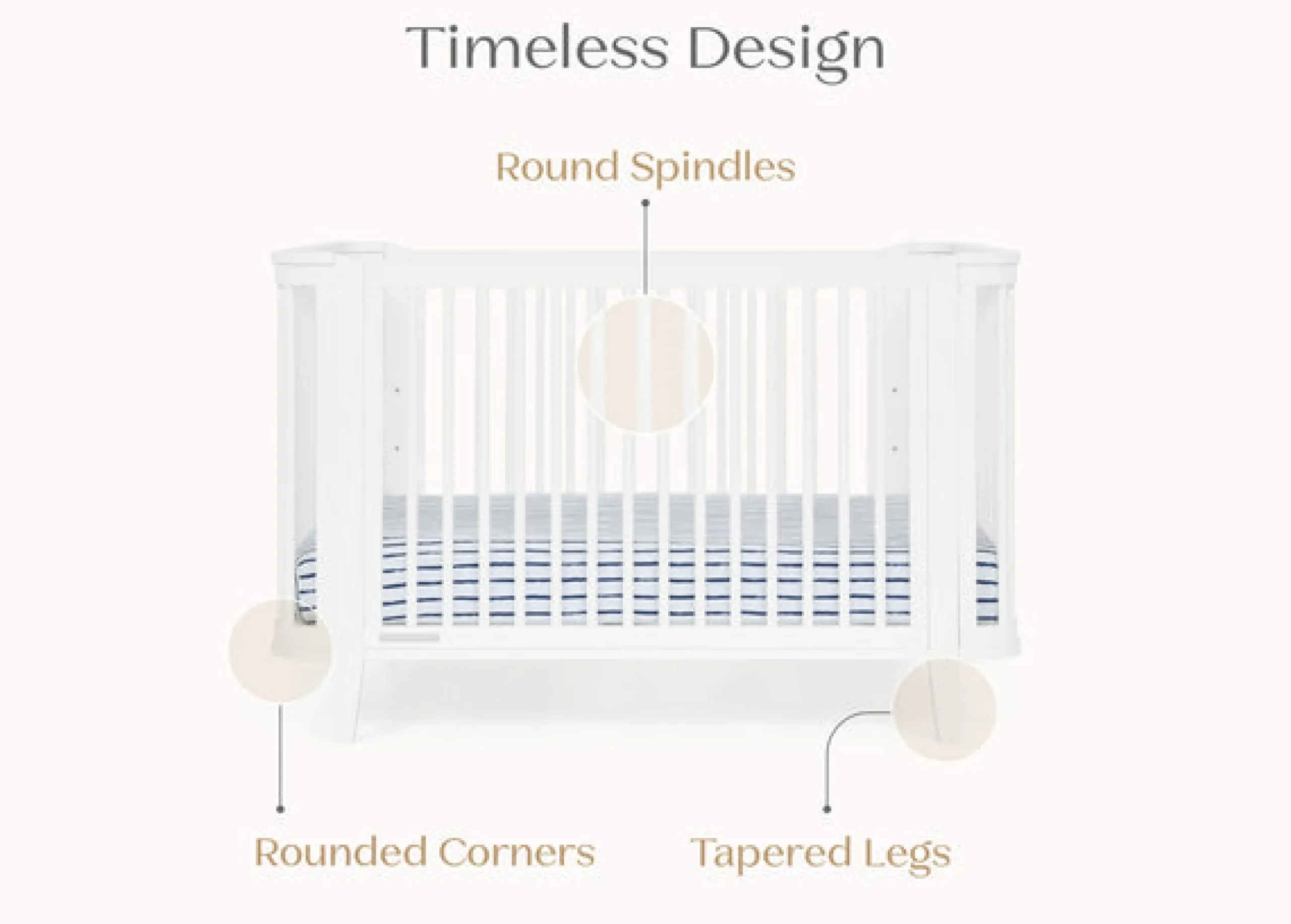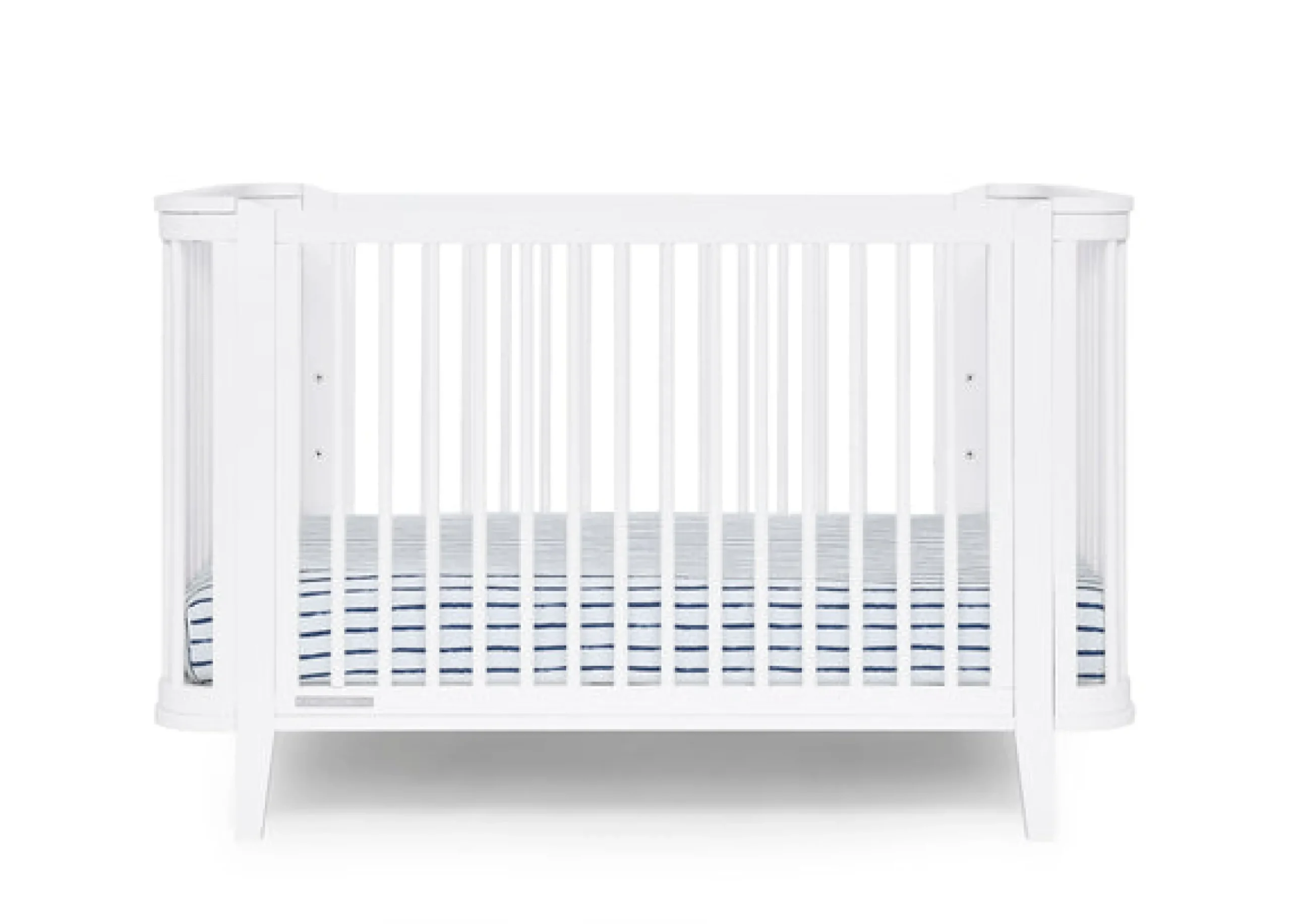A timeless crib with a modern twist, the Noah 4-in-1 Convertible Crib by Delta Children boasts an organically shaped design with rounded corners, spindles and tapered legs. Crafted to last, it features solid pine construction for support and durability. Plus, it can grow with your little one—simply convert this crib into toddler bed, daybed or sofa when your child is ready (Daybed/Sofa/Toddler Guardrail #W202725 sold separately). With three mattress positions that easily lower as your baby begins to sit, pull up and stand, you can find the height that’s best for them at every stage. Plus, it’s GREENGUARD Gold Certified, which means it’s built to contribute to cleaner air for a healthy home. Crib mattress sold separately.