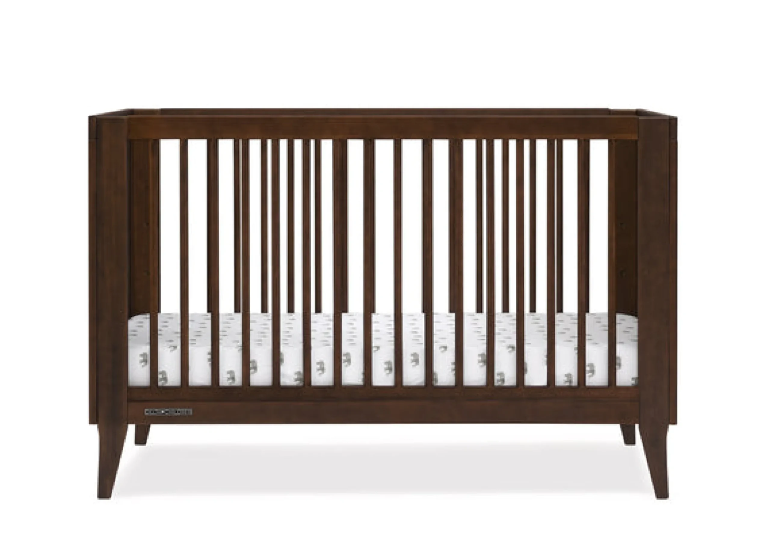 The Ollie 4-in-1 Convertible Crib by Delta Children effortlessly captures the mid-century modern look with its clean lines, spindles and angled legs