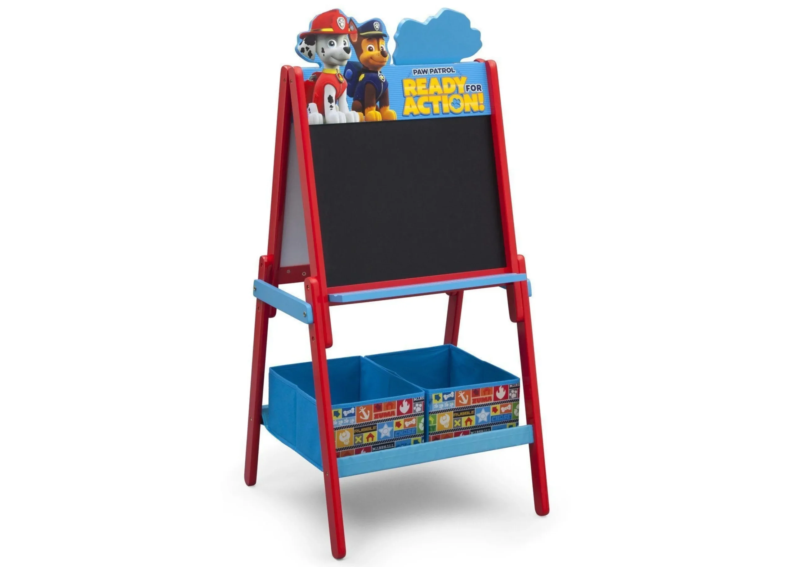 Sure to inspire the sweetest sketches, this PAW Patrol Double Sided Easel is designed with a magnetic, dry-erase surface on one side and a chalkboard on the other. Perfect for siblings or friends creating together, it also features two fabric bins to hold supplies and projects.