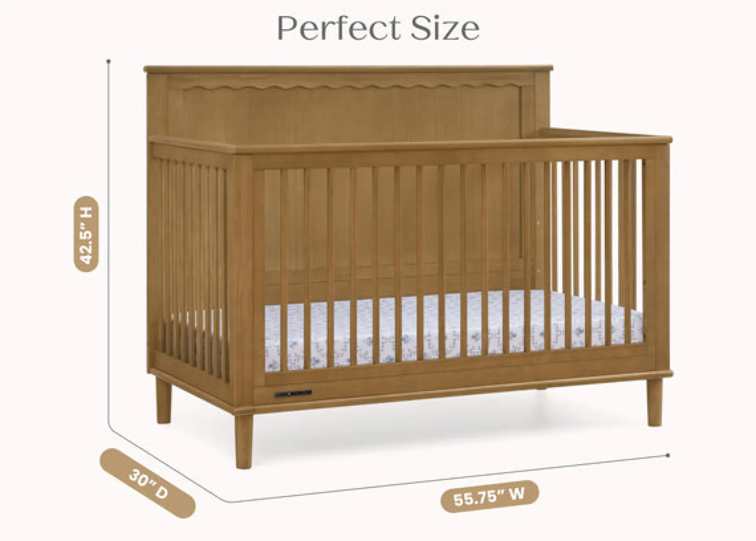 With charming scalloped molding, the Penelope 6-in-1 Convertible Crib by Delta Children adds a sculptural element to your nursery with its elegant “wave” detailing. Crafted of sustainable pine with a satin glaze finish, the Penelope is an heirloom piece that grows with your child over the years. Simply convert this crib into toddler bed, daybed, sofa or full size bed with and without footboard when your child is ready (Daybed/Sofa Rail included; Toddler Guardrail #W100725 and Full Size Wood Bed Rails #0050 sold separately). With three mattress positions that easily lower as your baby begins to sit, pull up and stand, you can find the height that’s best for them at every stage. Plus, it’s GREENGUARD Gold Certified, which means it’s built to contribute to cleaner air for a healthy home. Crib mattress sold separately.