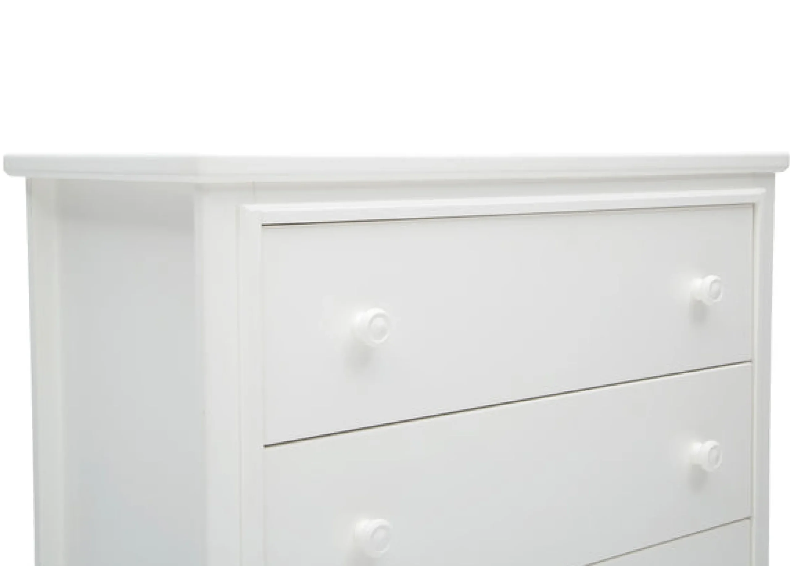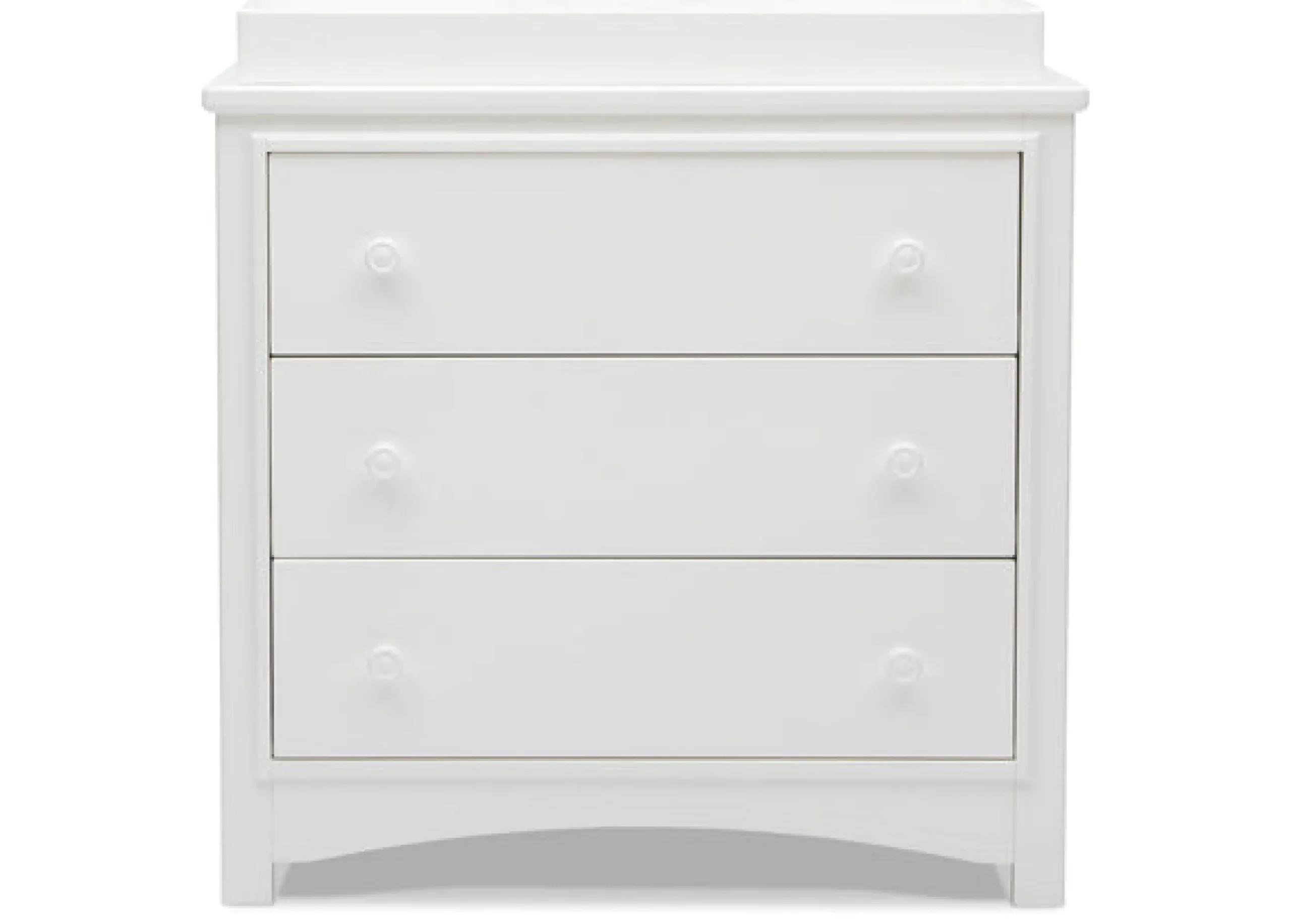 An array of smart design details makes the Perry 3 Drawer Dresser with Changing Top and Interlocking Drawers by Delta Children a standout style. The round drawer pulls accent the three spacious drawers that are trimmed with picture frame molding. Topped with a removable changing top, this nursery dresser creates the perfect space for diaper changing sessions now and is easily removable, so you can create a more grown-up space later on. For your child’s safety, this dresser is outfitted with an interlocking drawer system that limits the number of drawers that can be opened at one time. Available in Bianca White, Moonstruck Gray and Walnut Espresso. Complete your space with coordinating items in the Delta Children Perry Collection.This Delta Children dresser is tested to meet the current requirements of ASTM F2057, the mandatory CPSC safety standard that protects young children from furniture tip-over incidents. For your children’s safety, only purchase dressers that comply with this standard. For additional security, Delta Children strongly recommends that all dressers in your home be anchored; all Delta dressers include a wall anchor. To learn how to properly secure your dresser, please see the product assembly instructions or visit our website.