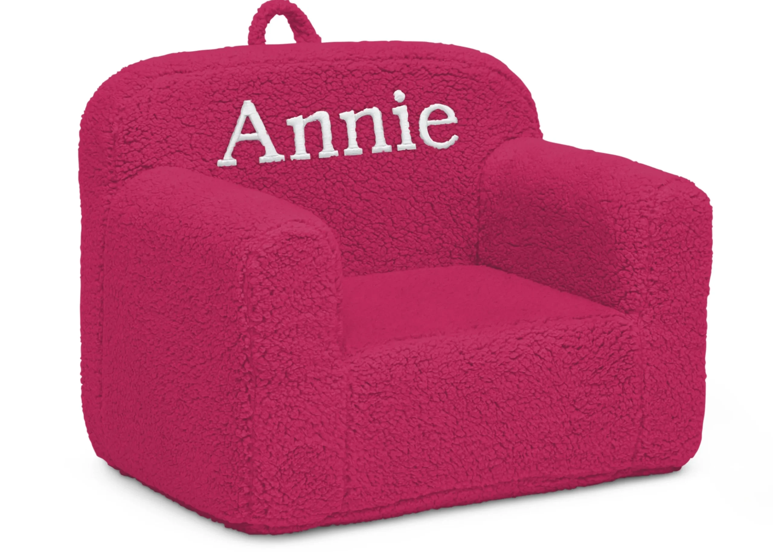 Cozy up to the Personalized Sherpa Cozee Chair for Kids by Delta Children. A snuggly spot for reading, watching TV or just hanging out, this supremely comfy chair features a Sherpa slipcover that adds texture and comfort, plus it’s removable and machine washable for easy cleaning. Perfect for the playroom, living room or your child’s bedroom, this kids’ foam chair goes anywhere they do–the lightweight design with handle on top is easy to move from room to room. Personalize it with a name for the perfect finishing touch. Recommended for ages 18 months+.