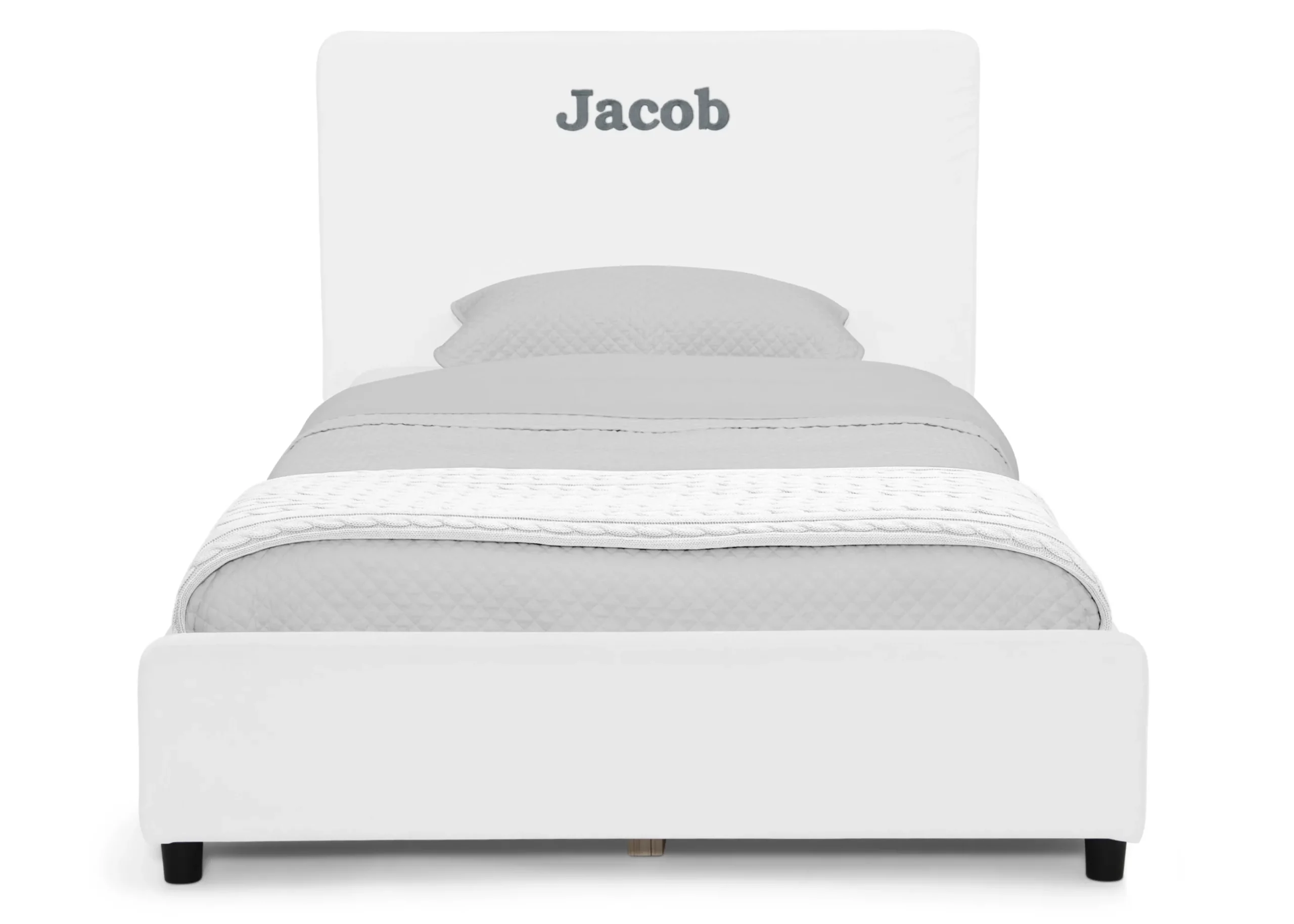 - Your child’s name will be beautifully embroidered on the headboard in the font and thread color of your choice – add to your cart to customize!