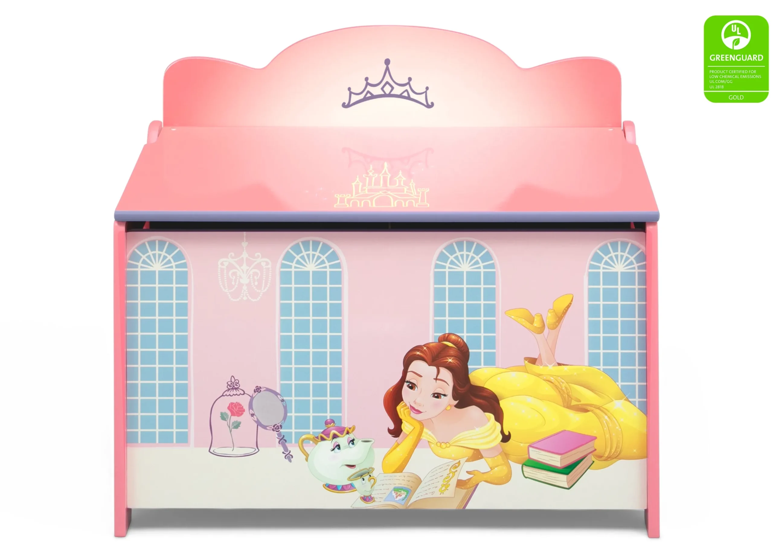 This toy box showcases colorful graphics of everyone’s favorite Disney Princesses