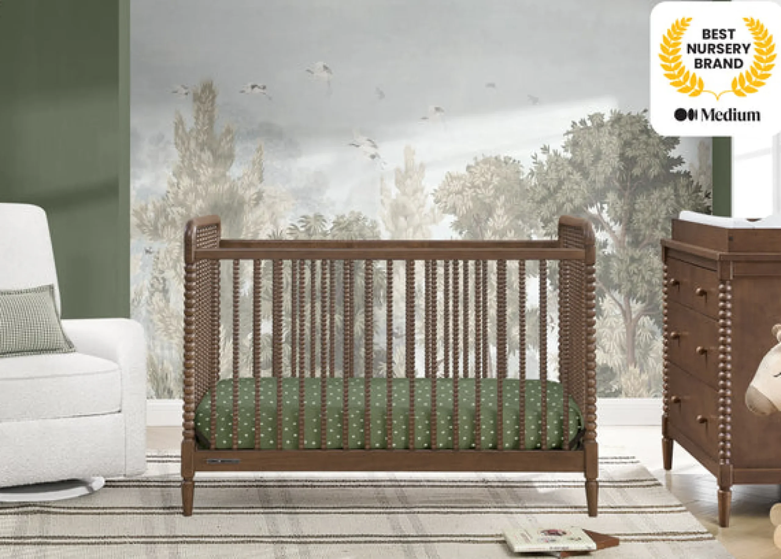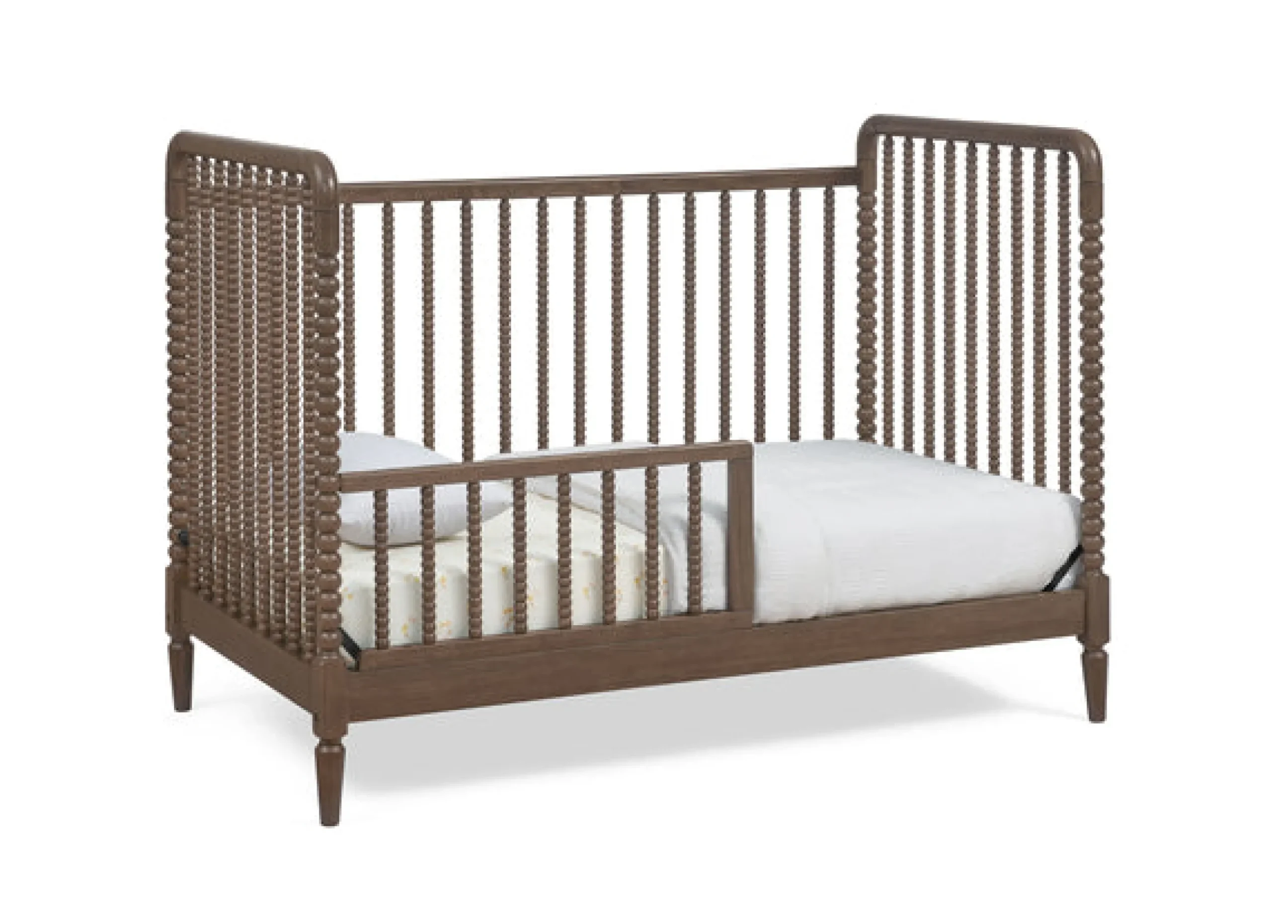 A modern take on vintage-inspired Jenny Lind furniture, the Saint 4-in-1 Convertible Baby Crib is adorned with solid wood turned spindles all around