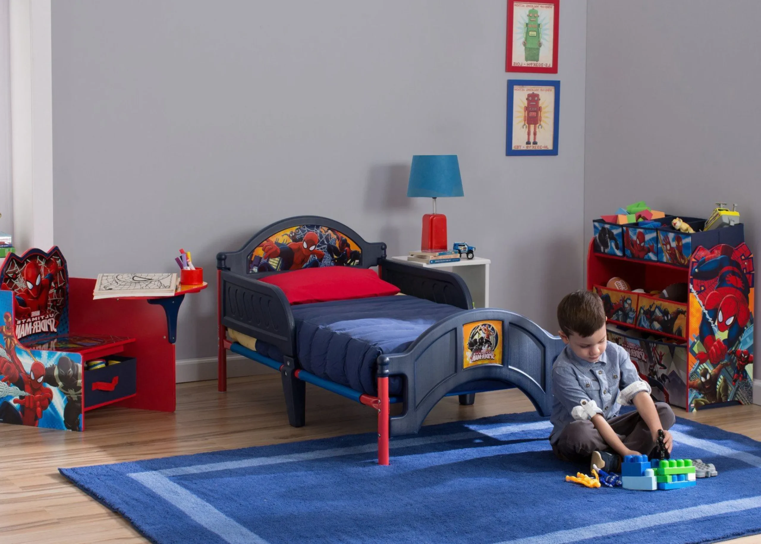 Designed to inspire action-packed dreams, this Spider-Man Toddler Bed is full of web-slinging fun! Featuring guardrails on both sides, plus colorful decals of your child’s favorite superhero at the headboard and footboard, it’s a must for any Spidey fan.