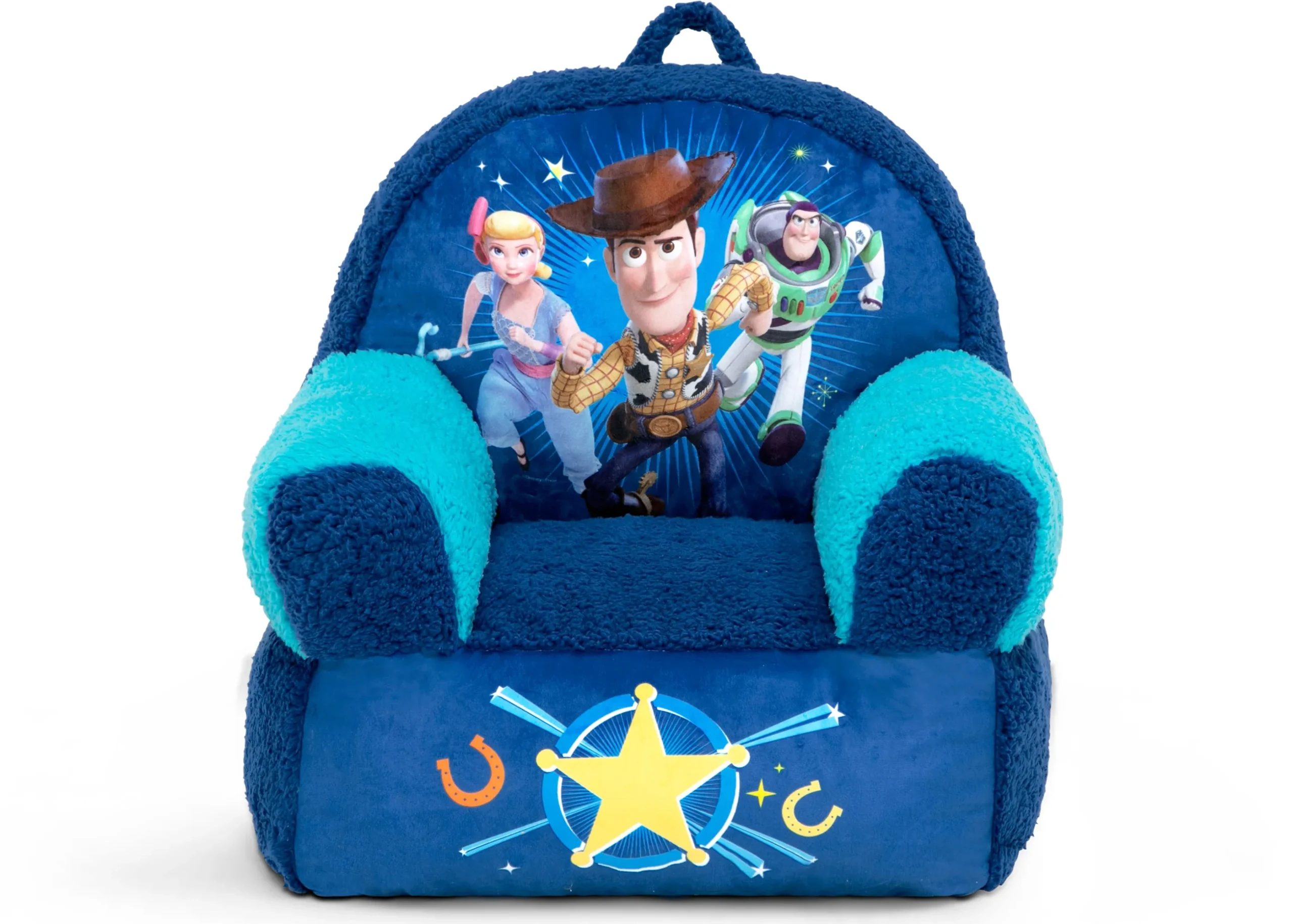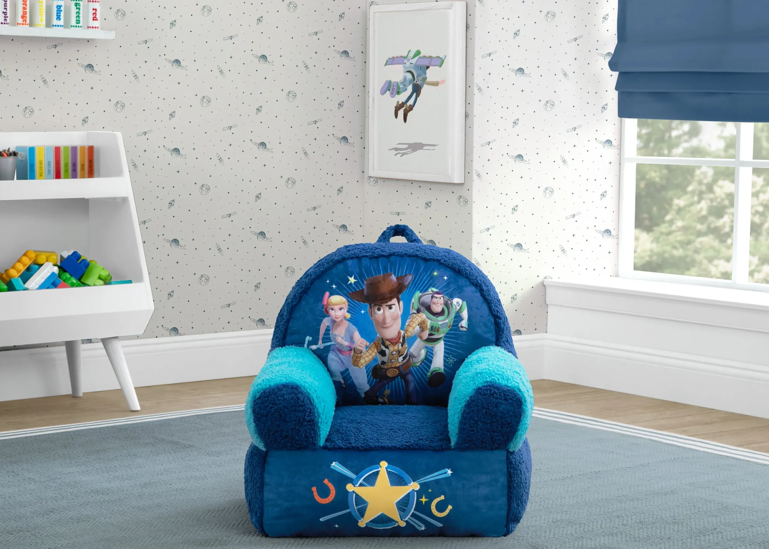 Kids can snuggle up with their favorite characters with the Toy Story Cozee Buddy Chair by Delta Children! This plush chair features colorful Toy Story graphics of Woody, Buzz Lightyear and Bo Peep, super-soft fabric and a handle that makes it easy to move around the house! The foam design of this comfy chair offers kids a cozy companion for reading, relaxing or snuggling, making it perfect for playrooms and kids’ bedrooms.