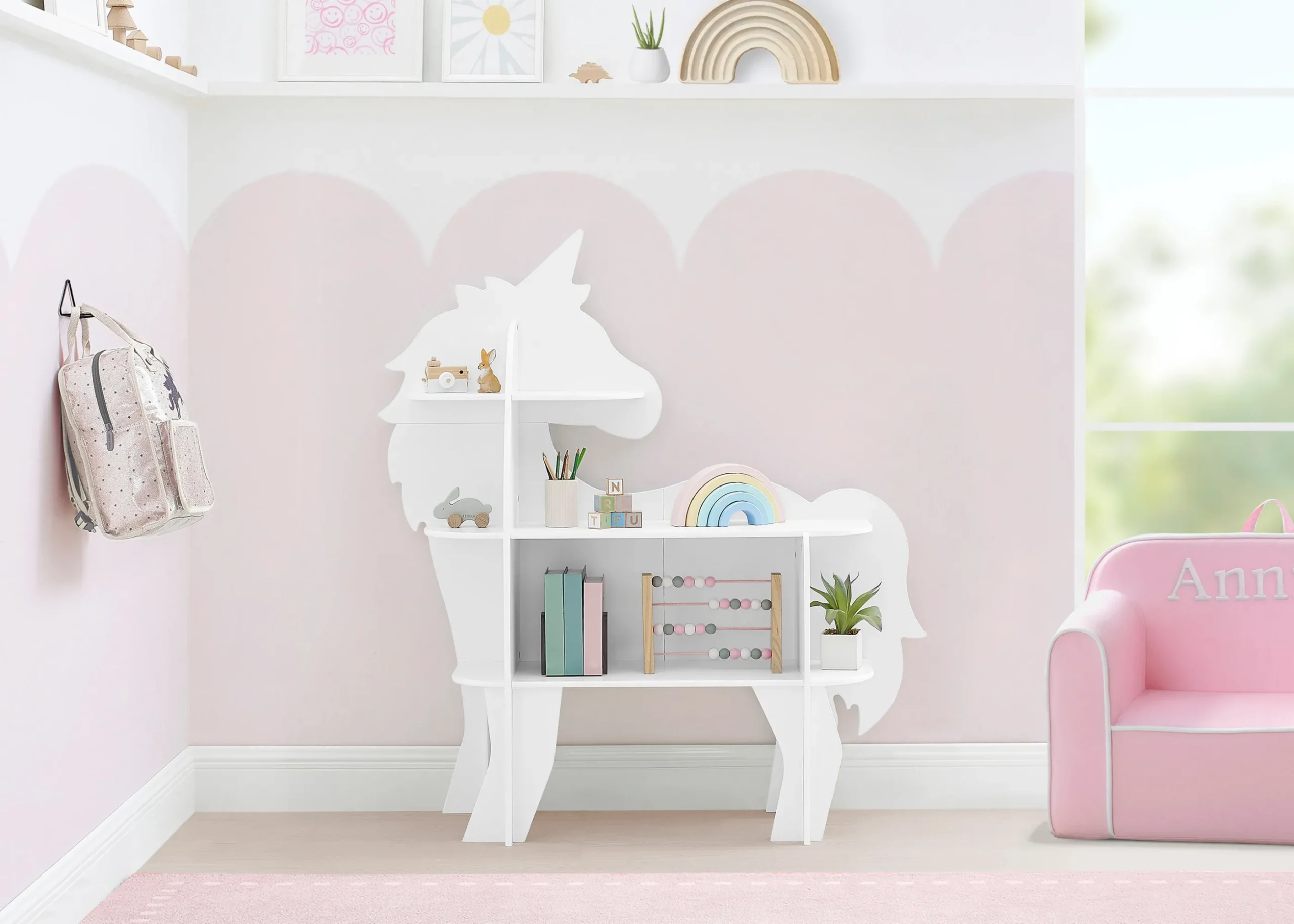 The perfect balance of magical and functional, this Unicorn Bookcase by Delta Children will make any space a bit more whimsical. An adorable addition to any play space or kid’s room, this bookcase features a variety of shelves in different shapes and sizes, giving plenty of space to hold toys, books or display décor. And the bottom shelves are easily accessible, so kids can help with the cleanup. Designed with your child’s safety in mind, this bookcase attaches securely to any wall with the included wall anchor. Plus, it’s GREENGUARD Gold Certified, which means it’s built to contribute to cleaner air for a healthy home.