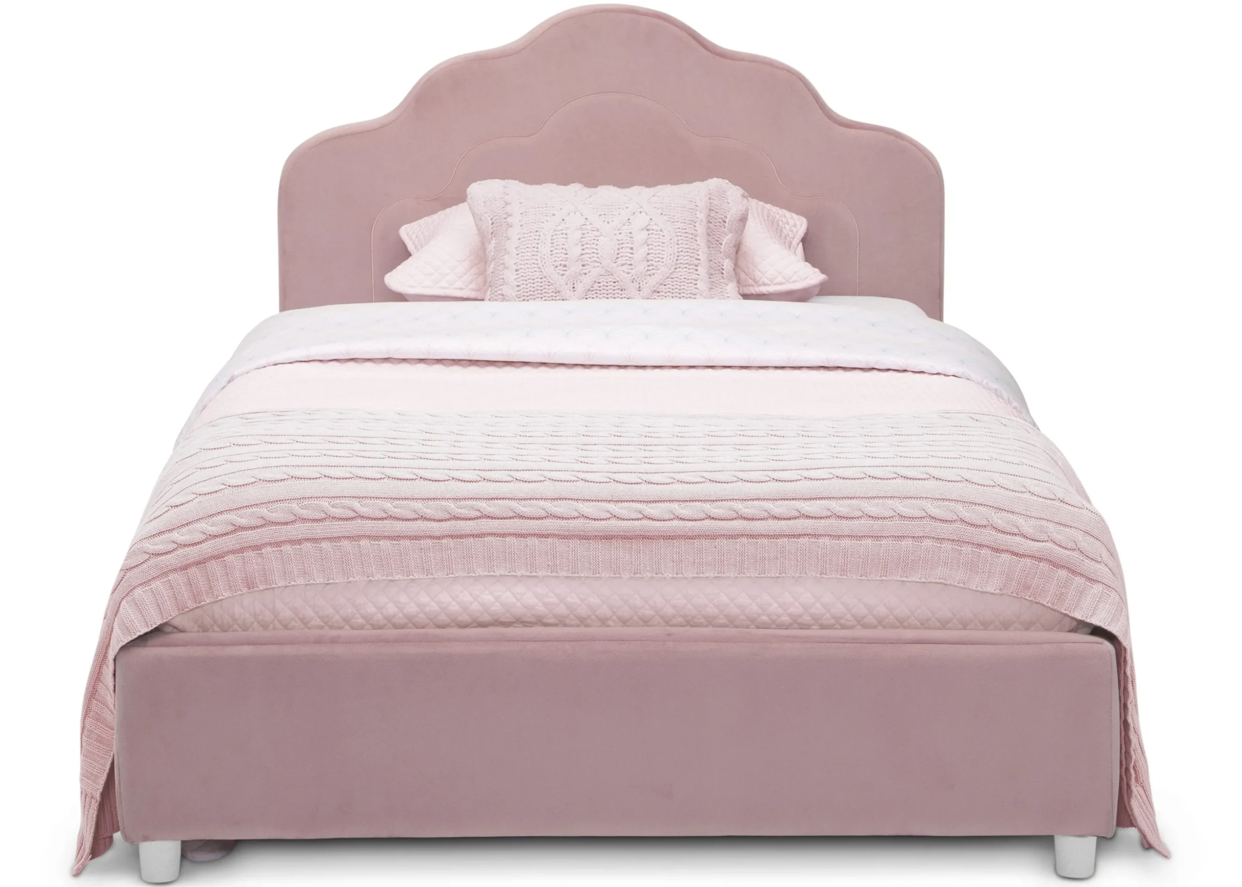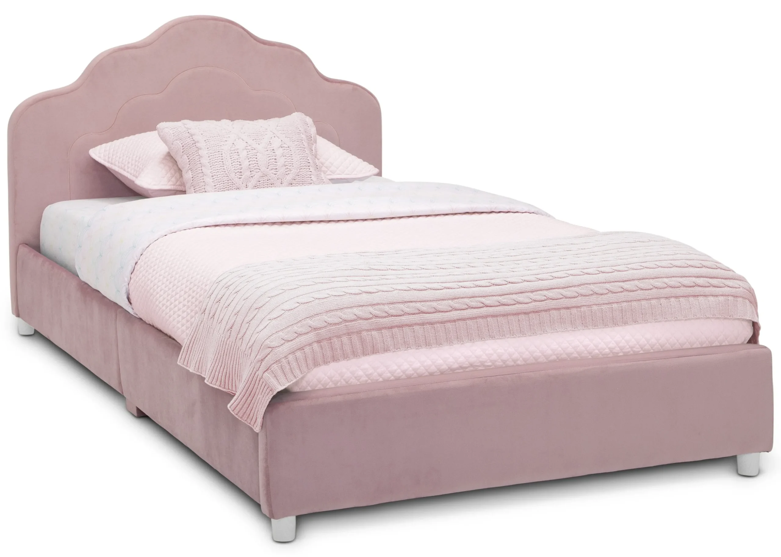 Inspire Sweet dreams with this Upholstered Twin Bed by Delta Children. Perfect for your little one’s bedroom, This kids’ twin bed shows off velvety upholstery with a playful scalloped silhouette for a look both you and your child will love. Generous padding ensures long-lasting comfort and support while sitting up to read or watch TV. The bed’s durable wood platform frame with slats eliminates the need for a box spring. Twin mattress sold separately. Delta Children was founded around the idea of making safe, high-quality children’s furniture affordable for all families. They know there’s nothing more important than safety when it comes to your child’s space. That’s why all Delta Children products are built with long-lasting materials to ensure they stand up to years of jumping and playing. Plus, they are rigorously tested to meet or exceed all industry safety standards.