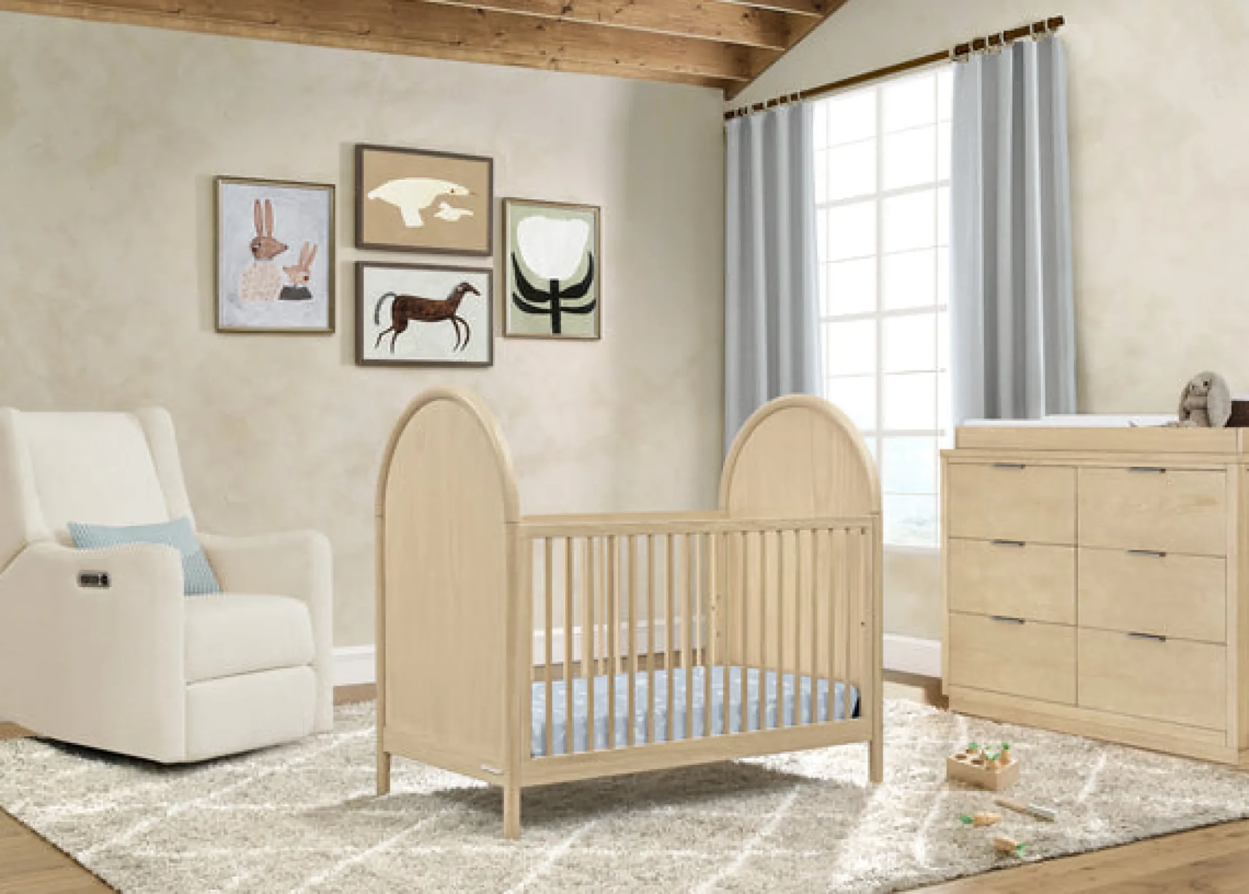 This crib meets or exceeds the most stringent chemical emissions standards to create a healthier home for your baby. It has been screened for more than 10,000 chemicals and VOCs that are known to pollute indoor air, certifying it contributes to cleaner indoor air. When you buy this crib, you can feel good about what you’re putting in your child’s nursery